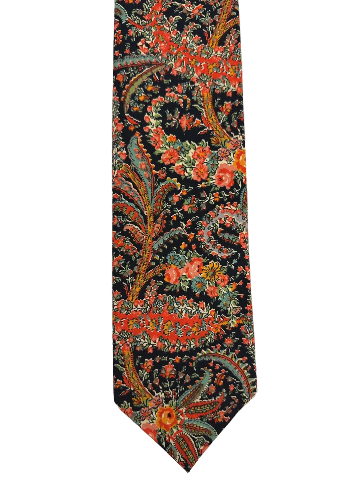 Fabulous vintage floral tie by Liberty of London made of 100% cotton in England and in excellent vintage condition. The brightly colored flowers pop against a navy background, lovely year round.