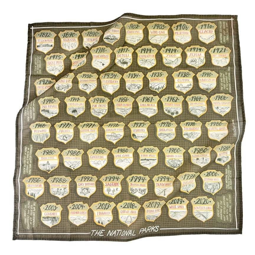 National Parks | Bandanas or hankerchiefs can be used in so many ways! Wear them around your neck while hiking the great outdoors, or as a hair accessory to spice up an outfit. Designed in USA, 100% cotton.