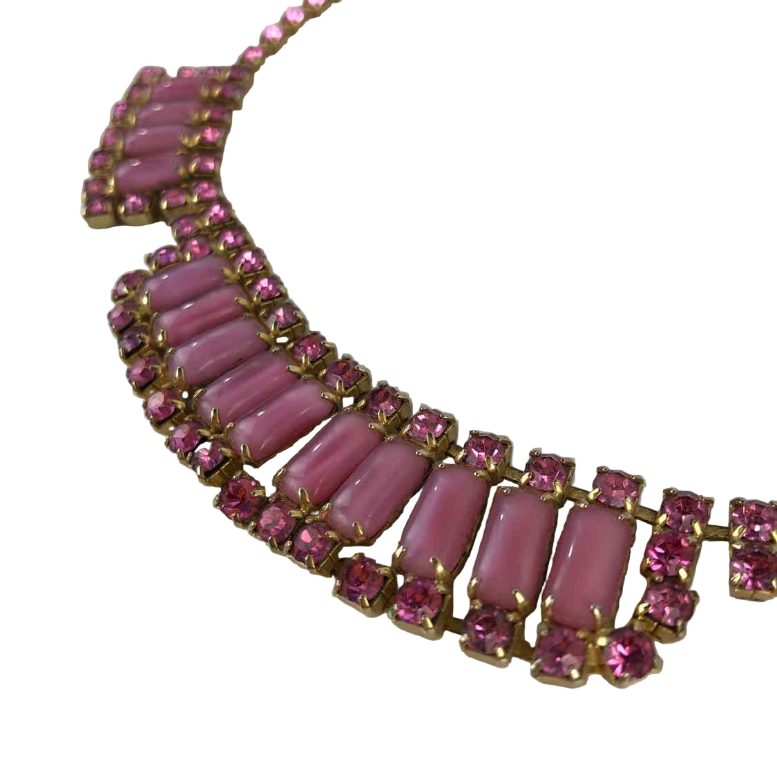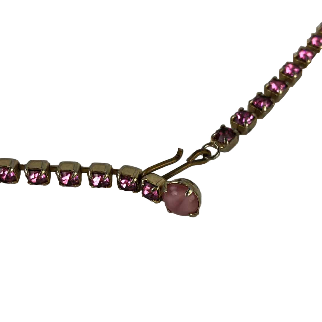 Beautiful pink glass rhinestone choker necklace c. 1950s, pretty and delicate with an adjustable clasp. In excellent vintage condition and timelessly chic for a costume jewelry lover.