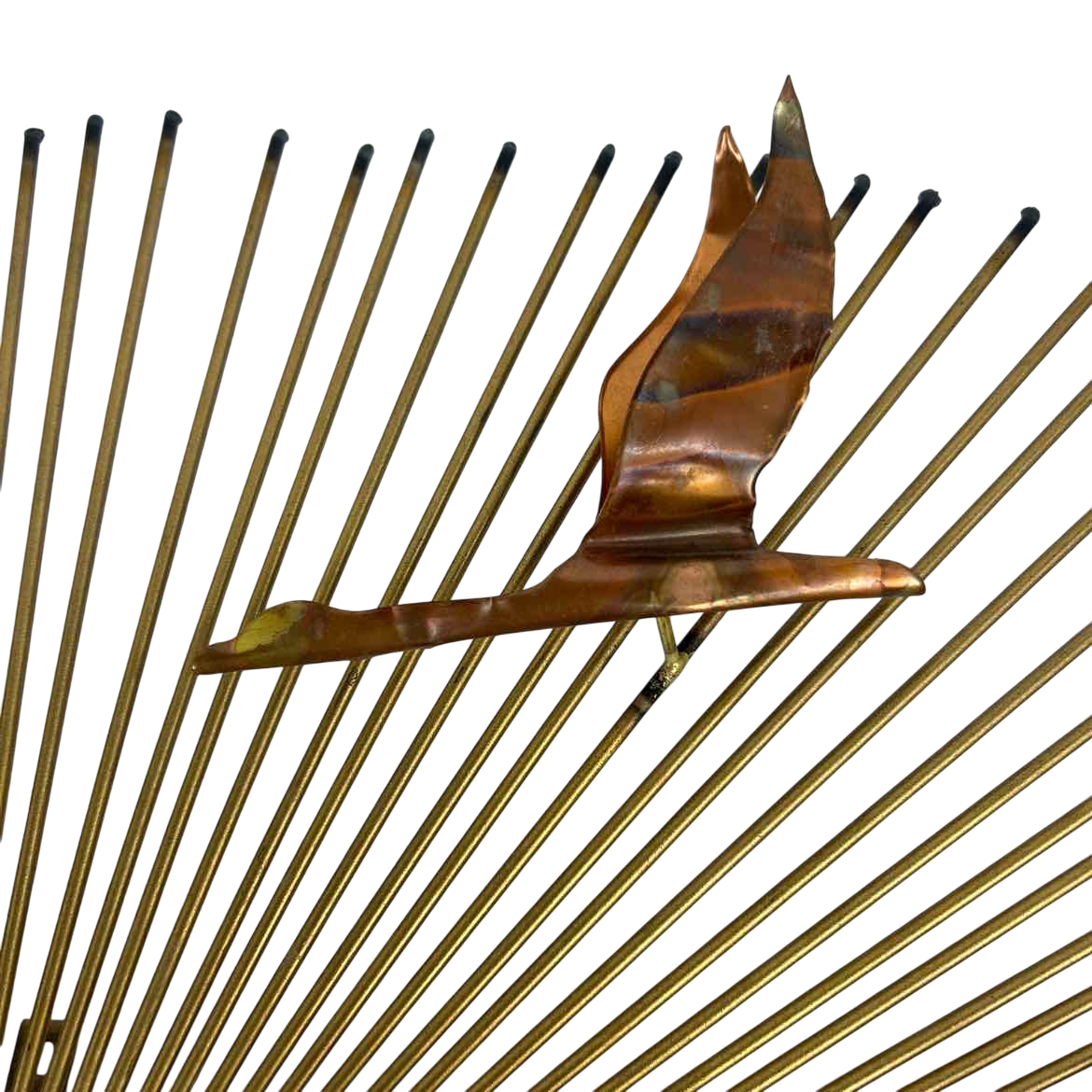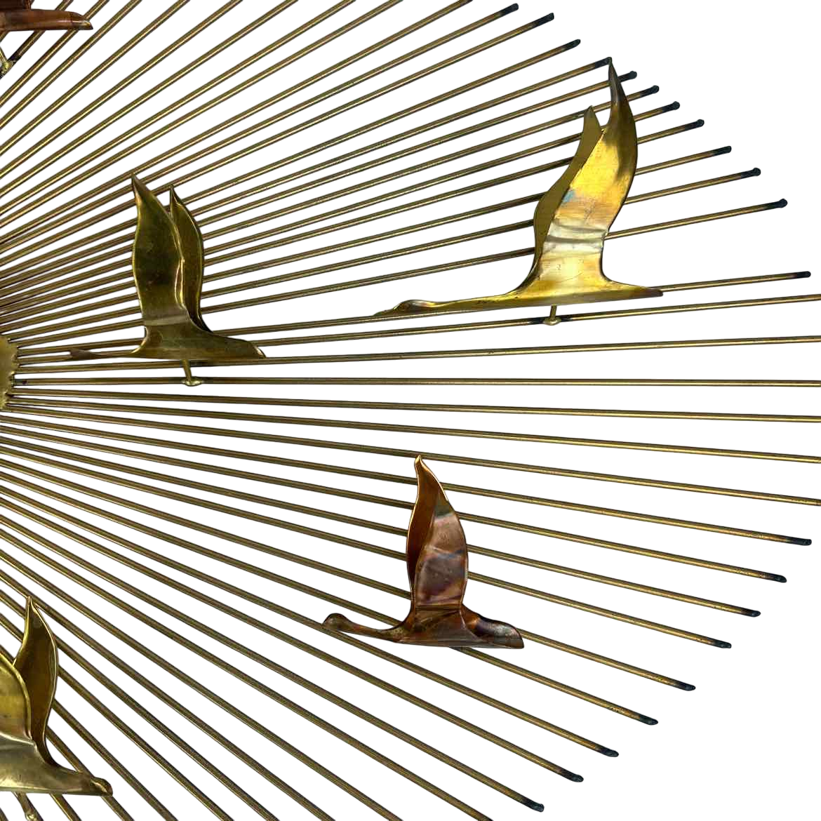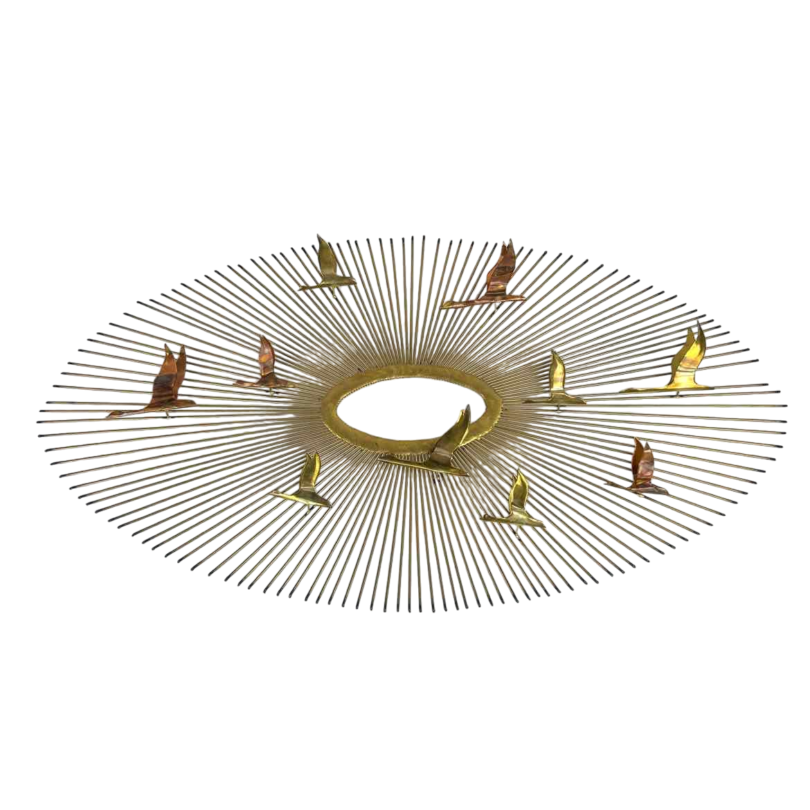 Mid-century modern C. Jere Sunburst Birds wall sculpture in great vintage condition.
