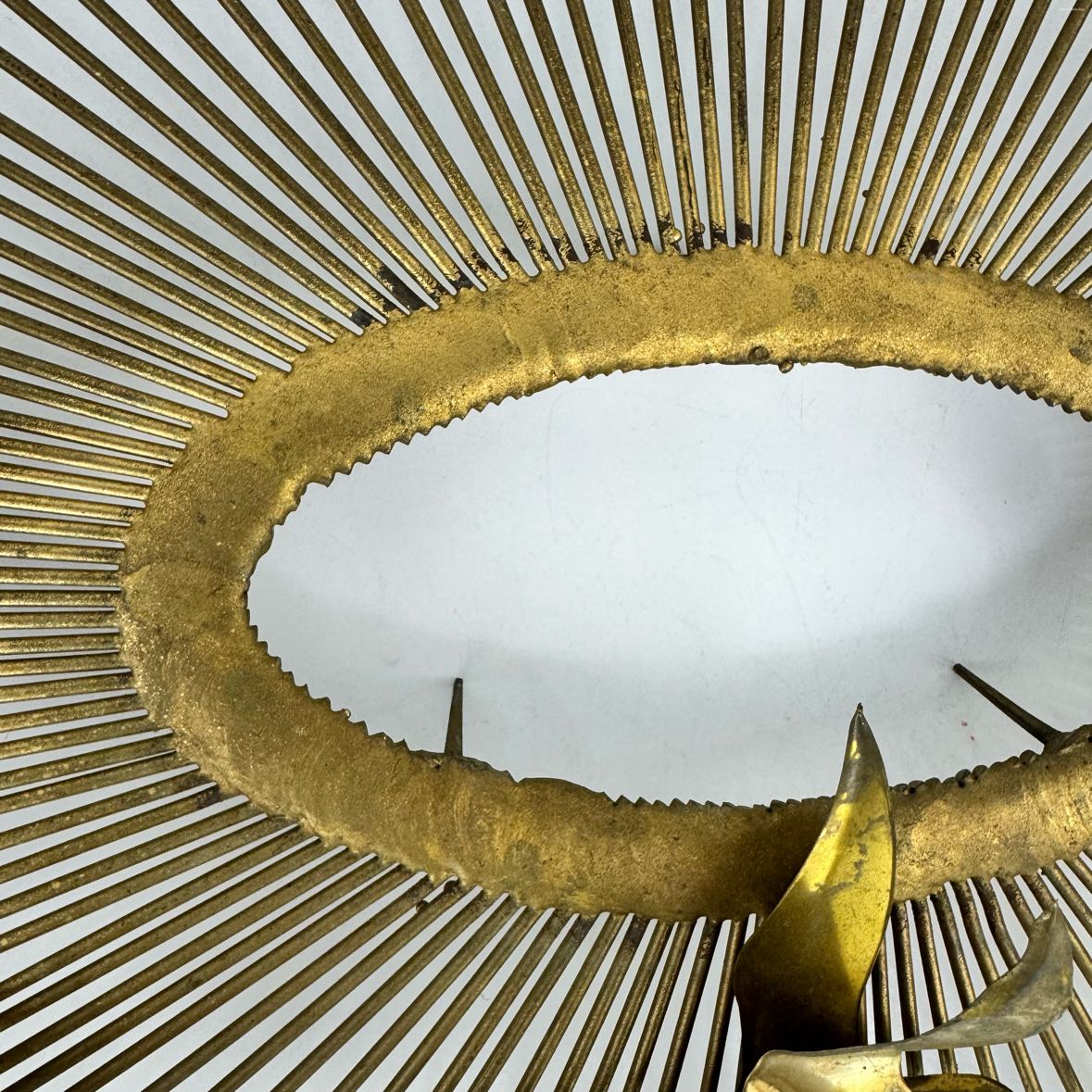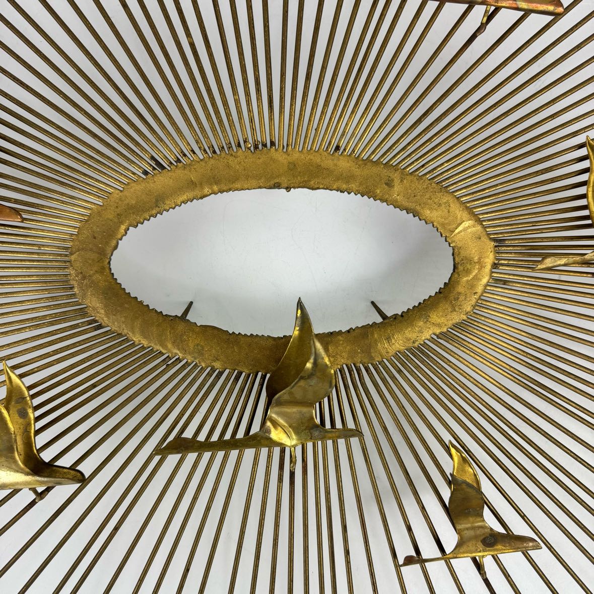 Mid-century modern C. Jere Sunburst Birds wall sculpture in good vintage condition with some patina and surface rust as shown.
