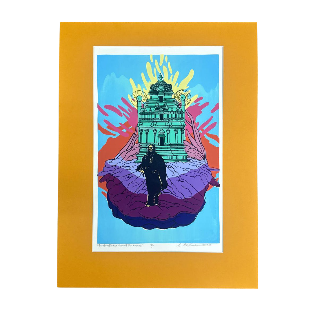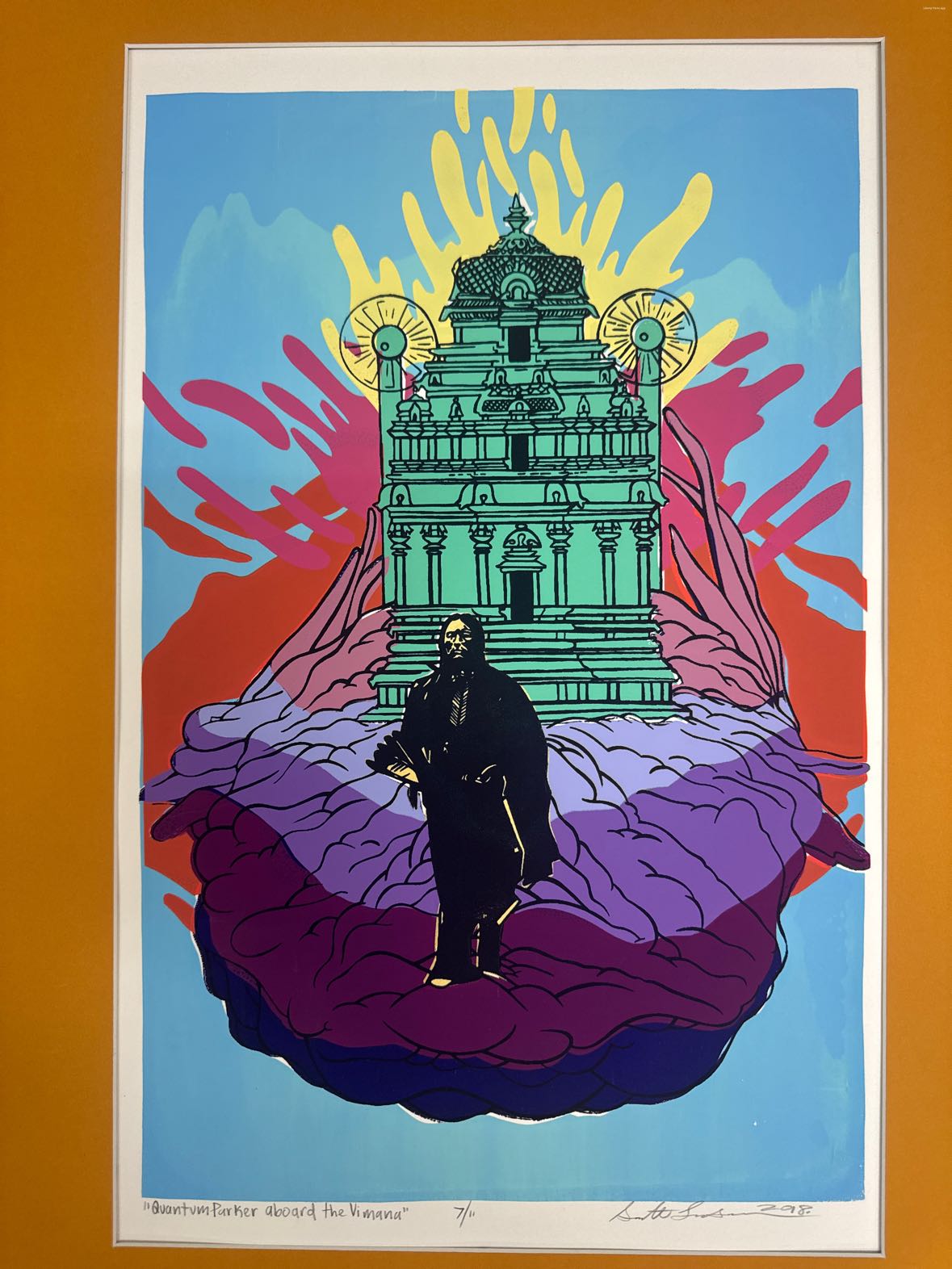 Quantum Parker Aboard the Vimana (matted) | Signed & numbered 7/11 limited edition serigraph screen print by Midland, Texas artist Scott Lunson. Comes in a plastic sleeve with backing board on textured art paper. Art measures 11"x 17".