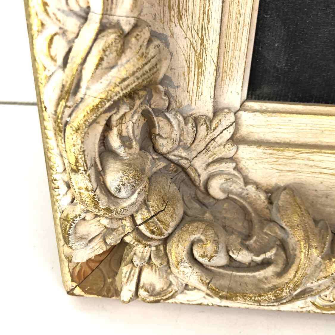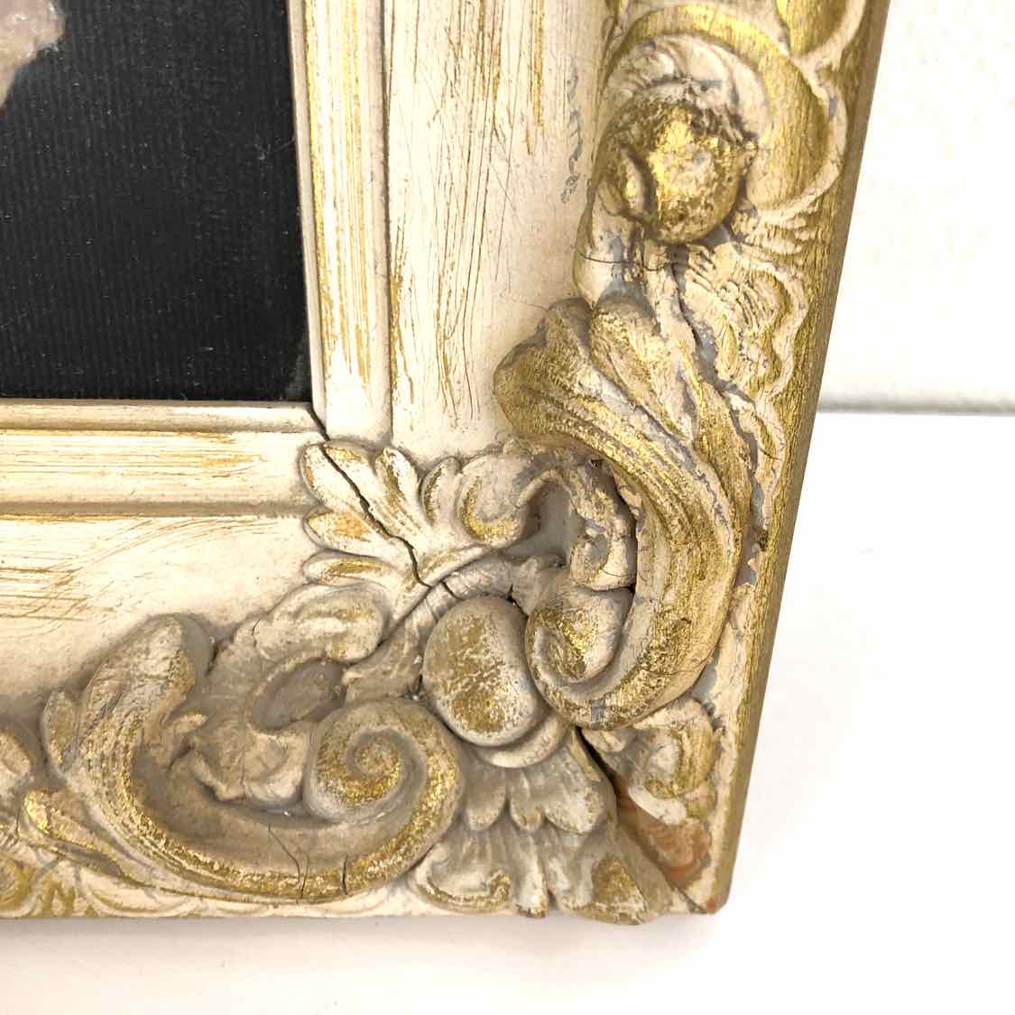 Upcycled framed bridal portrait c. 1950s that has been customized into a skeleton, on canvas or canvas board. In good vintage condition with a few chips to the details on the frame as shown.