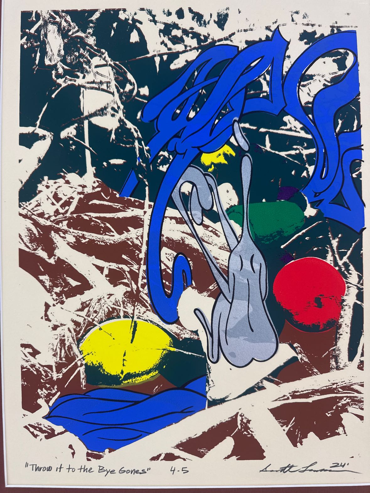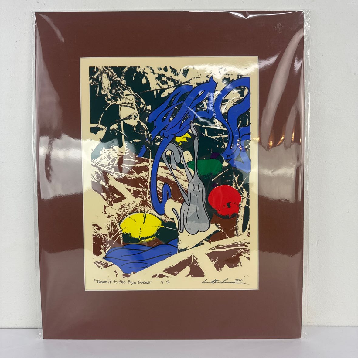 Throw it to the Bye Gones (matted) | Signed & numbered 4/5 limited edition serigraph screen print by Midland, Texas artist Scott Lunson. Comes in a plastic sleeve with backing board on textured art paper. Art measures 10.5"x 14". Contact for shipping.