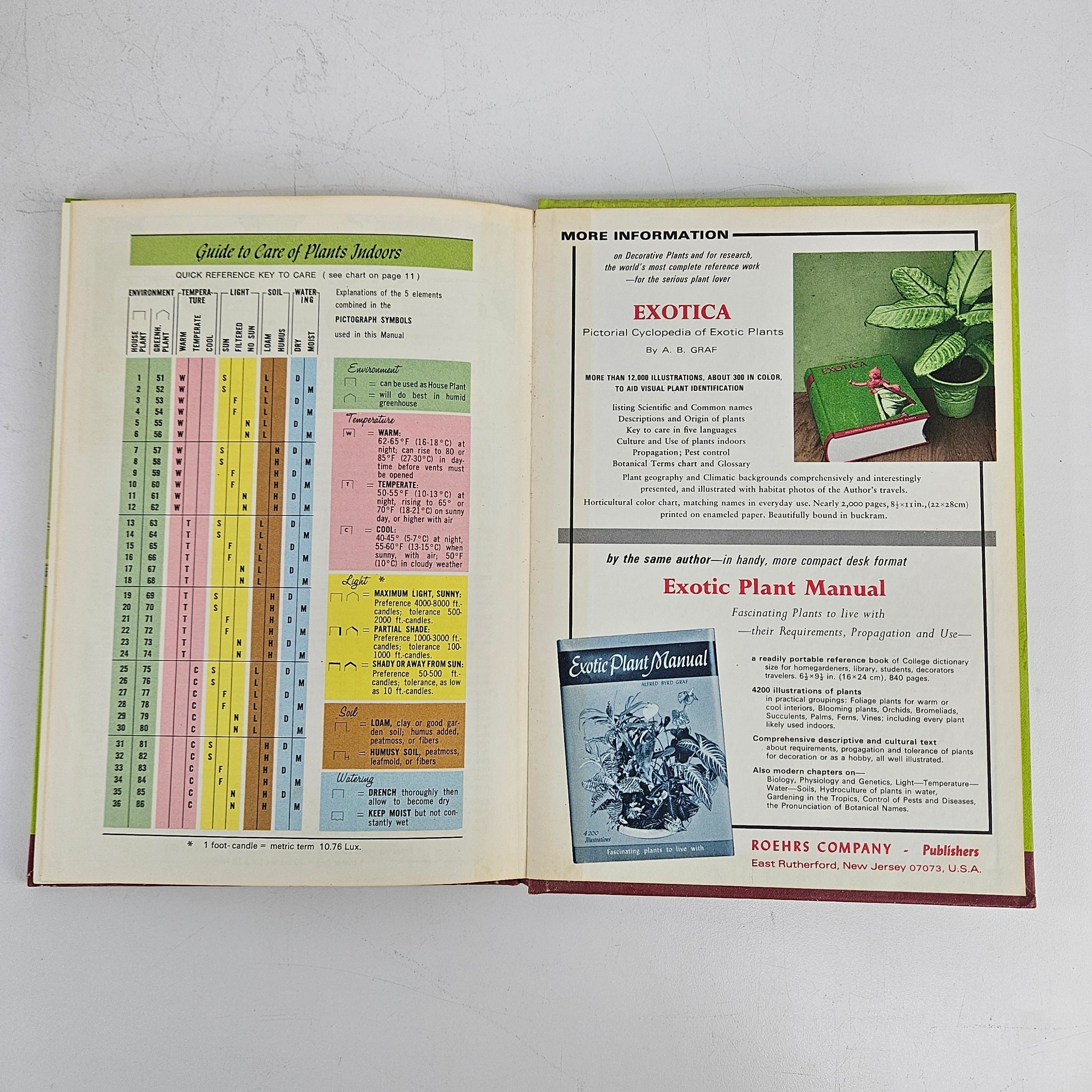 Exotic House Plants hardback book printed in 1973 and in good vintage condition with some light cover wear. The binding is crisp and it is full of information and full color & black & white illustrations.