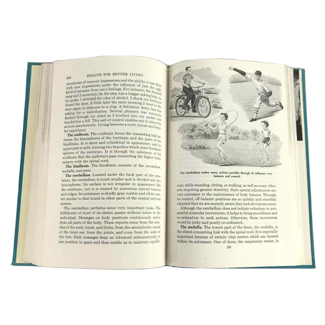 Health for Better Living hardbook book from the 1950s with a nice blue linen cover with yellow script lettering on the cover. In very good vintage condition with some cover wear but excellent interior.