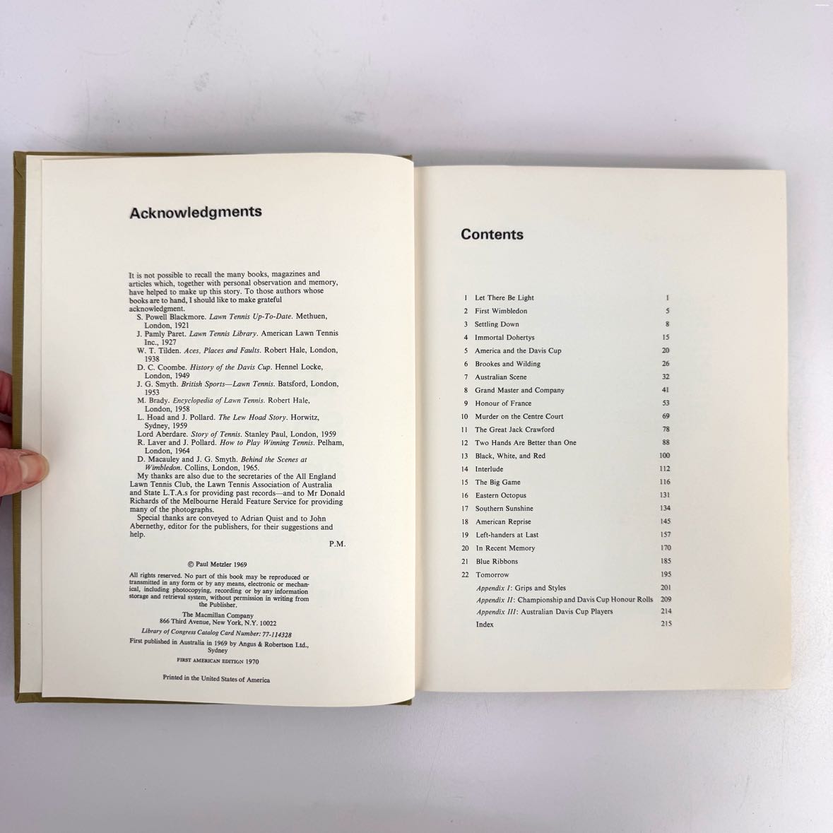 Rare copy of Tennis Styles & Stylists hardback book with a faded green linen cover, printed in 1969 and in good vintage condition aside from having no dust jacket.