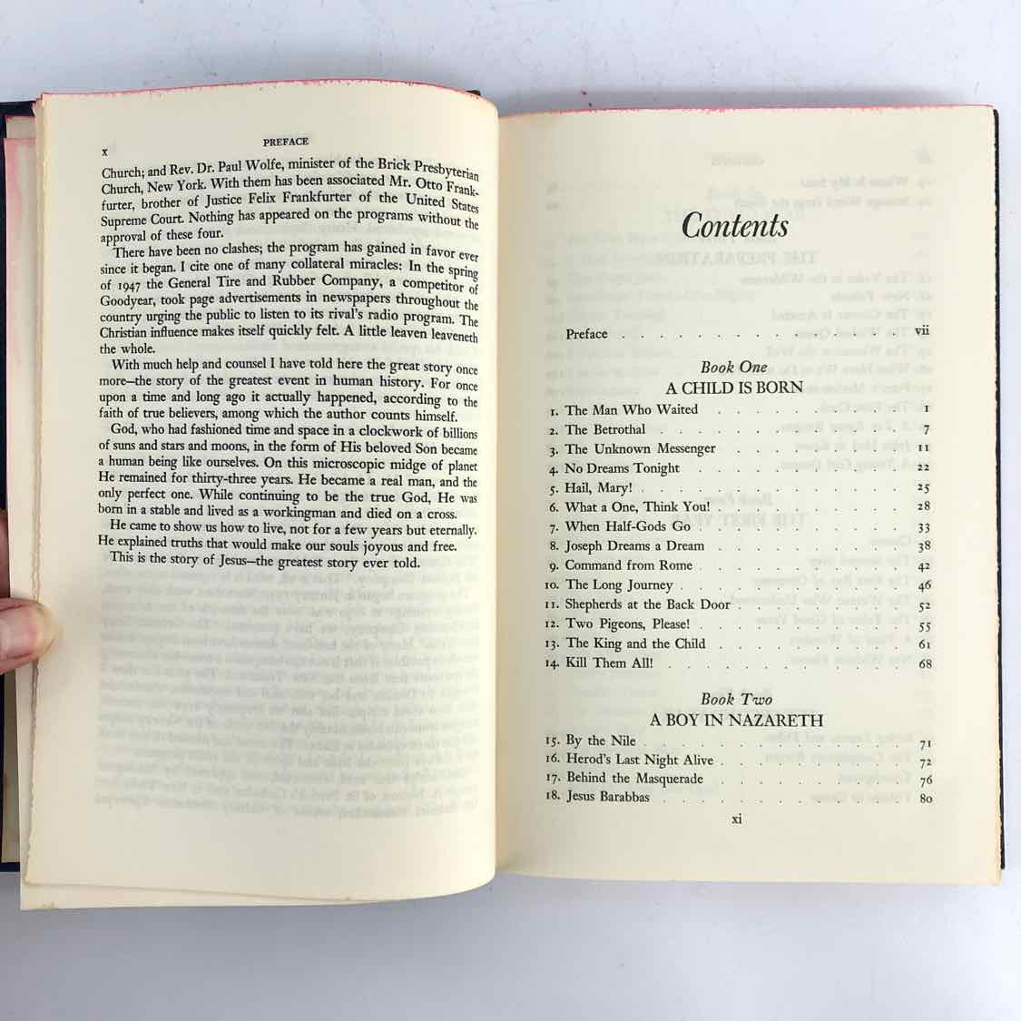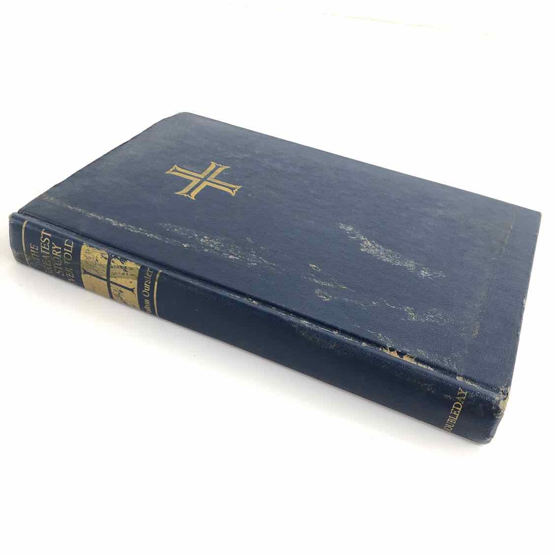 The Greatest Story Ever Told a Tale of the Greatest Life Ever Lived hardcover book by Fulton Oursler. Published in 1949 by doubleday & company, inc, it is in fairly good vintage condition with some discoloration to the cover and inside binding.