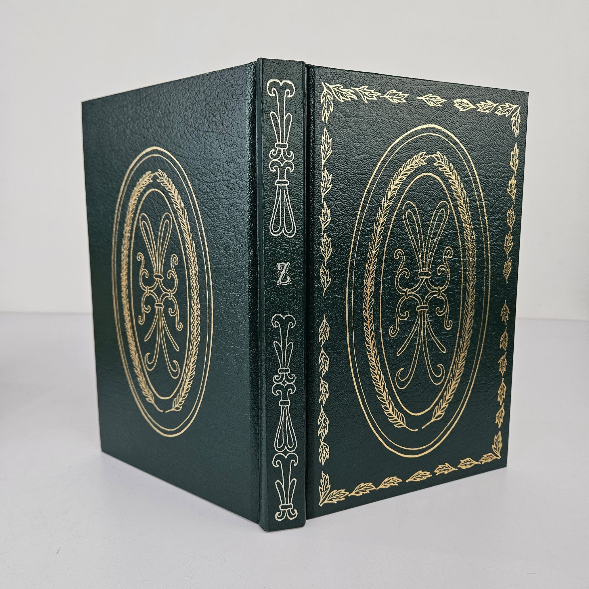 The cover on this geneology book is gorgeous and has a letter Z in gold lettering on the spine. This is a Zant family history book, but it makes a nice decor book even if you don't share the name. In excellent vintage condition.