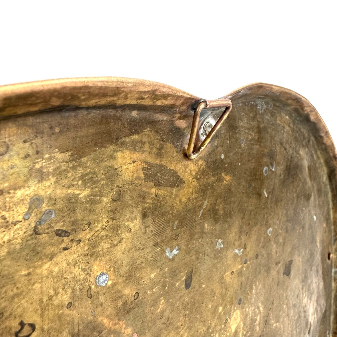 Large heart shaped brass tray with faux bamboo rail and handles. Includes ring on the underside for hanging. In good vintage condition and somewhat polished, with some remaining patina.