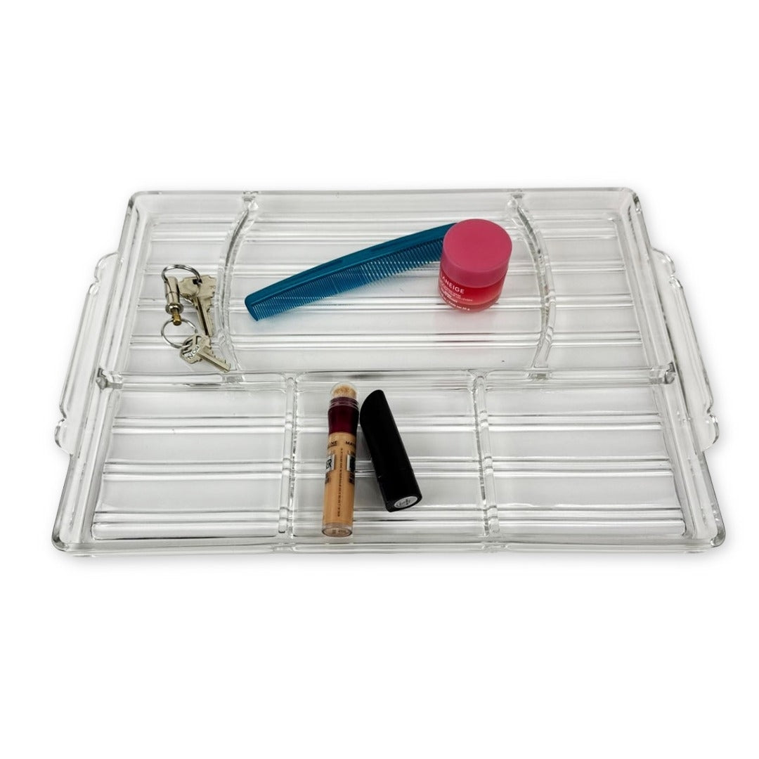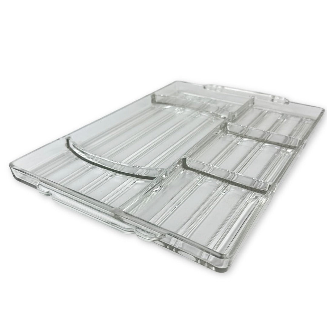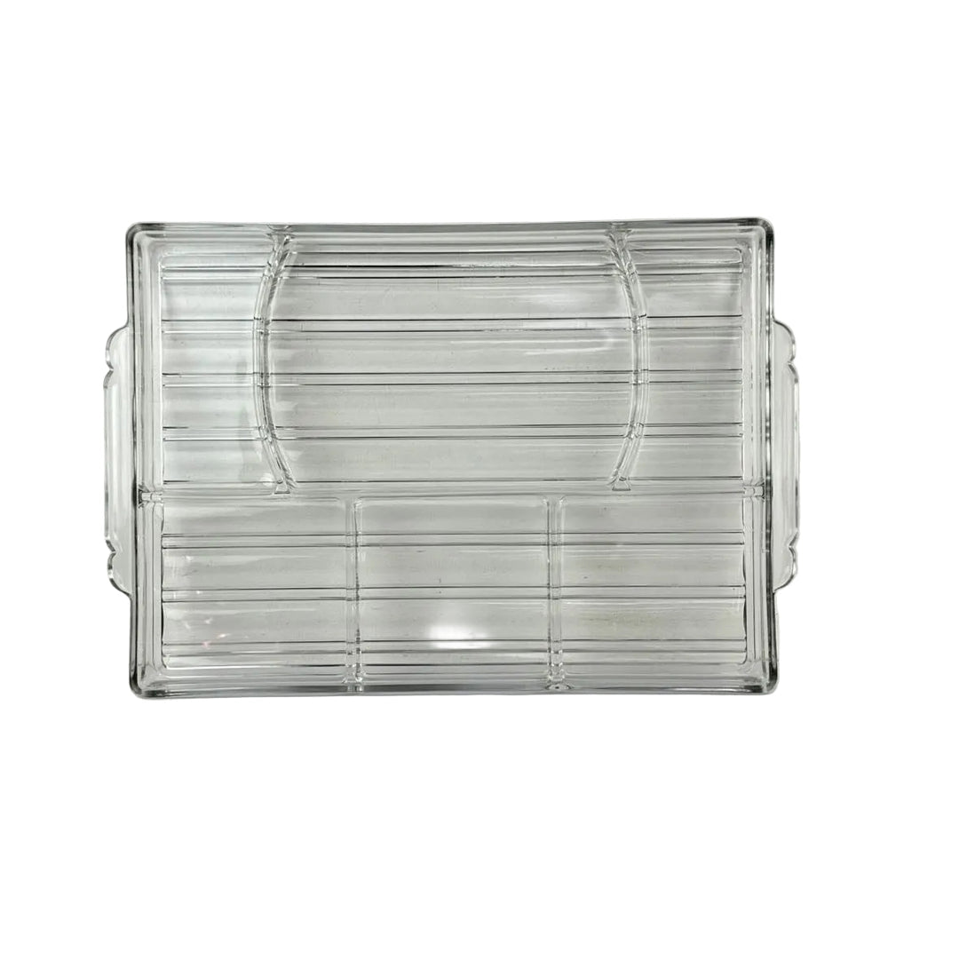 Large vintage divided glass hostess tray by Sunbeam in excellent vintage condition. This 1930s tray may be nearly 100 years old, but is is timelessly cool for organizing, charcuterie, or crafting.