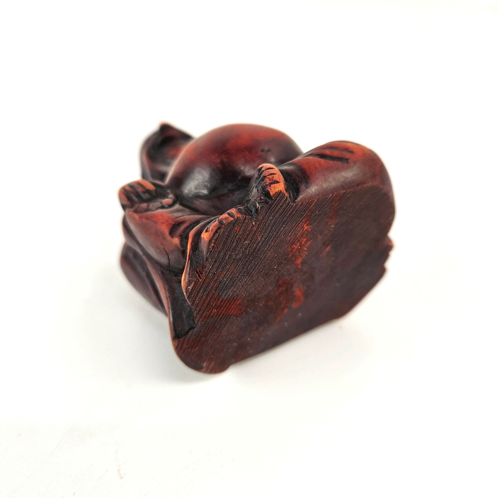 Hand carved vintage wooden seated Buddha statue in very good vintage condition, vintage condition with a reddish mahogany finish. Some rubbing to the finish as shown.