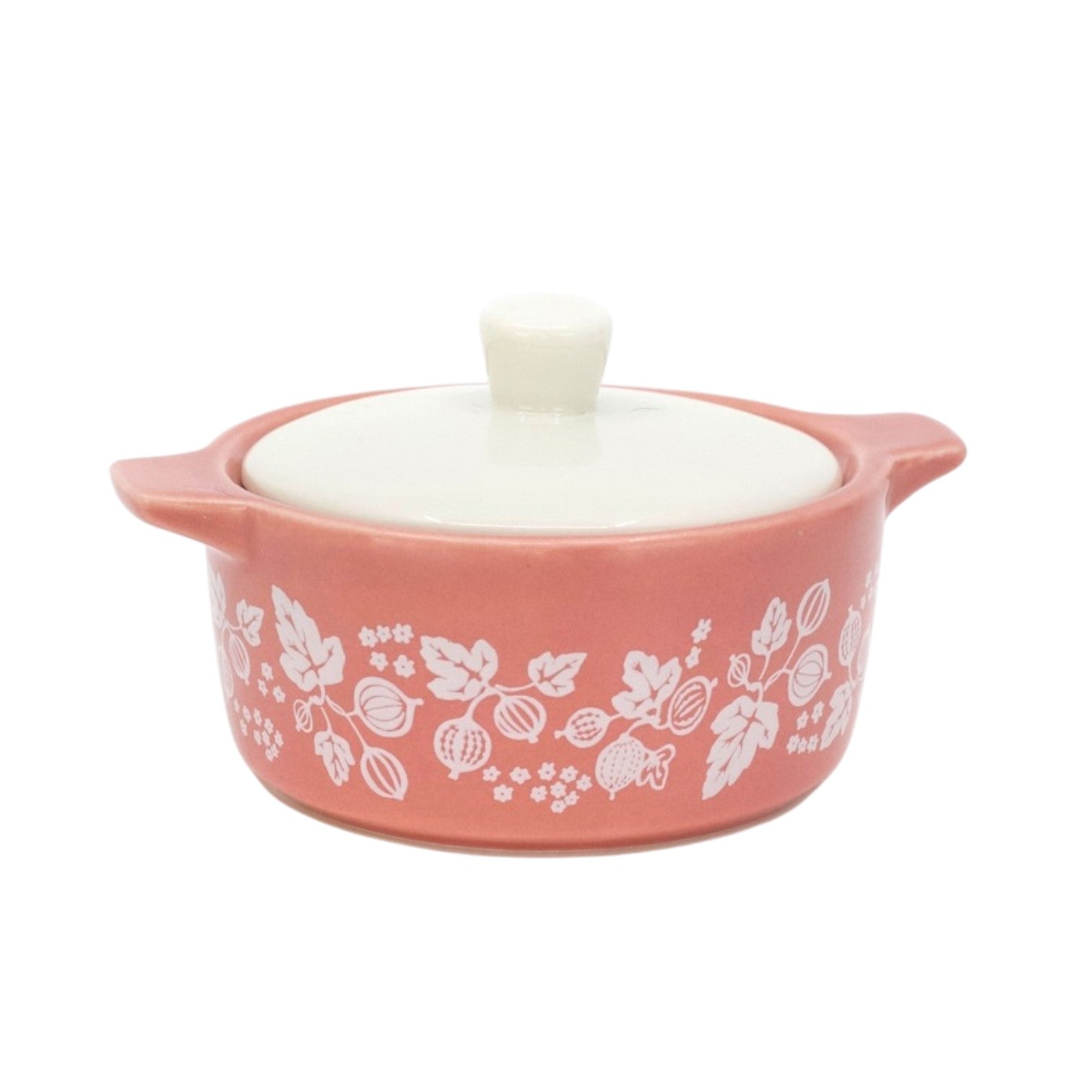 Inspired by the beloved vintage Pyrex casseroles that once brightened mid-century kitchens, this ceramic trinket box turns everyday nostalgia into something you can hold in your hands. Finished in a soft pink glaze and topped with a charming white lid, it captures that unmistakable Pyrex-inspired warmth in a tiny, giftable size. Whether displayed on a vanity, a shelf, or displayed along with favorite vintage finds, it’s a sweet, timeless nod to classic kitchenware design.