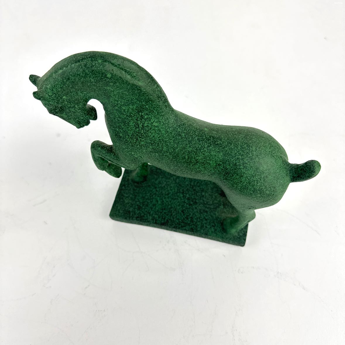 Imperial Horse of Xian sculpture made in 1985 from heavy bronze by Franklin Mint, with a dark black-green patina. It weighs over 3 lbs and is in excellent vintage condition with a felt liner on the underside & signature from Yao You-Xin.