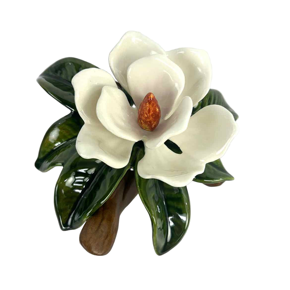 This large ceramic magnolia sculpture was crafted by Jamar Mallory Studio in the 1970s. In excellent vintage condition and a great addition to a Southern inspired bookshelf.