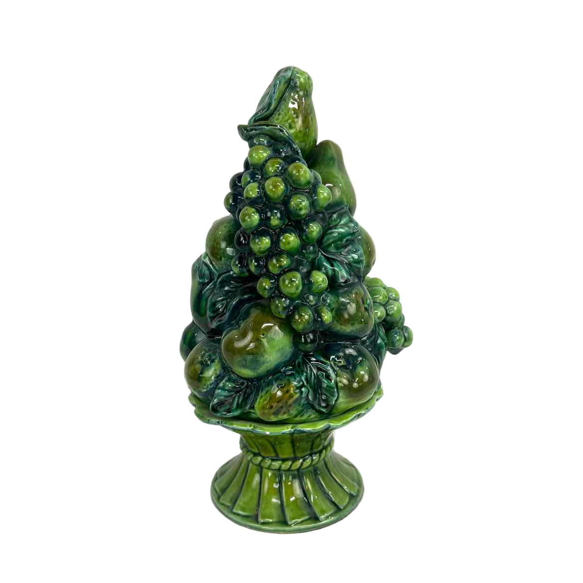 Pottery fruit pyramid sculpture, in very good vintage condition with rich blue and green tones.