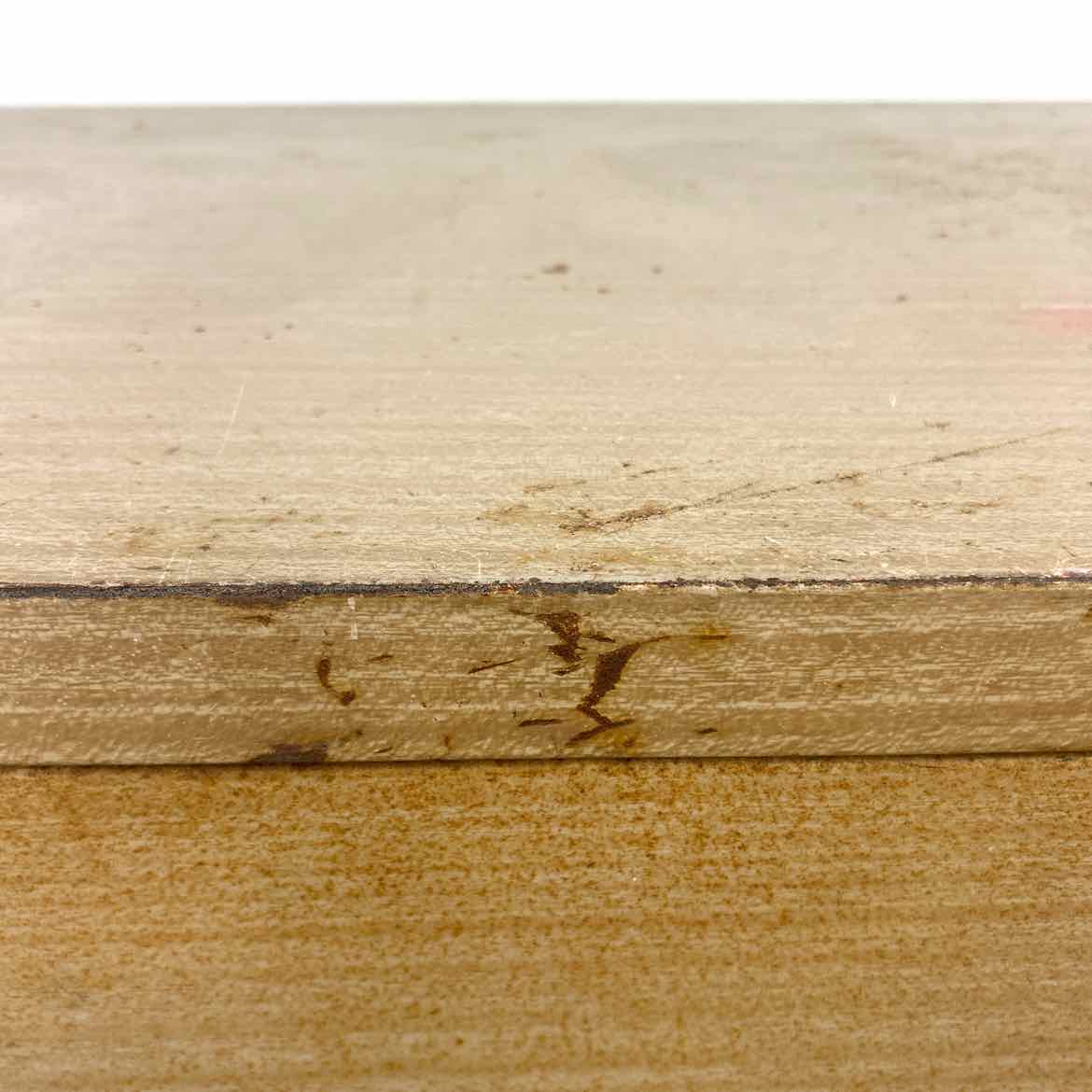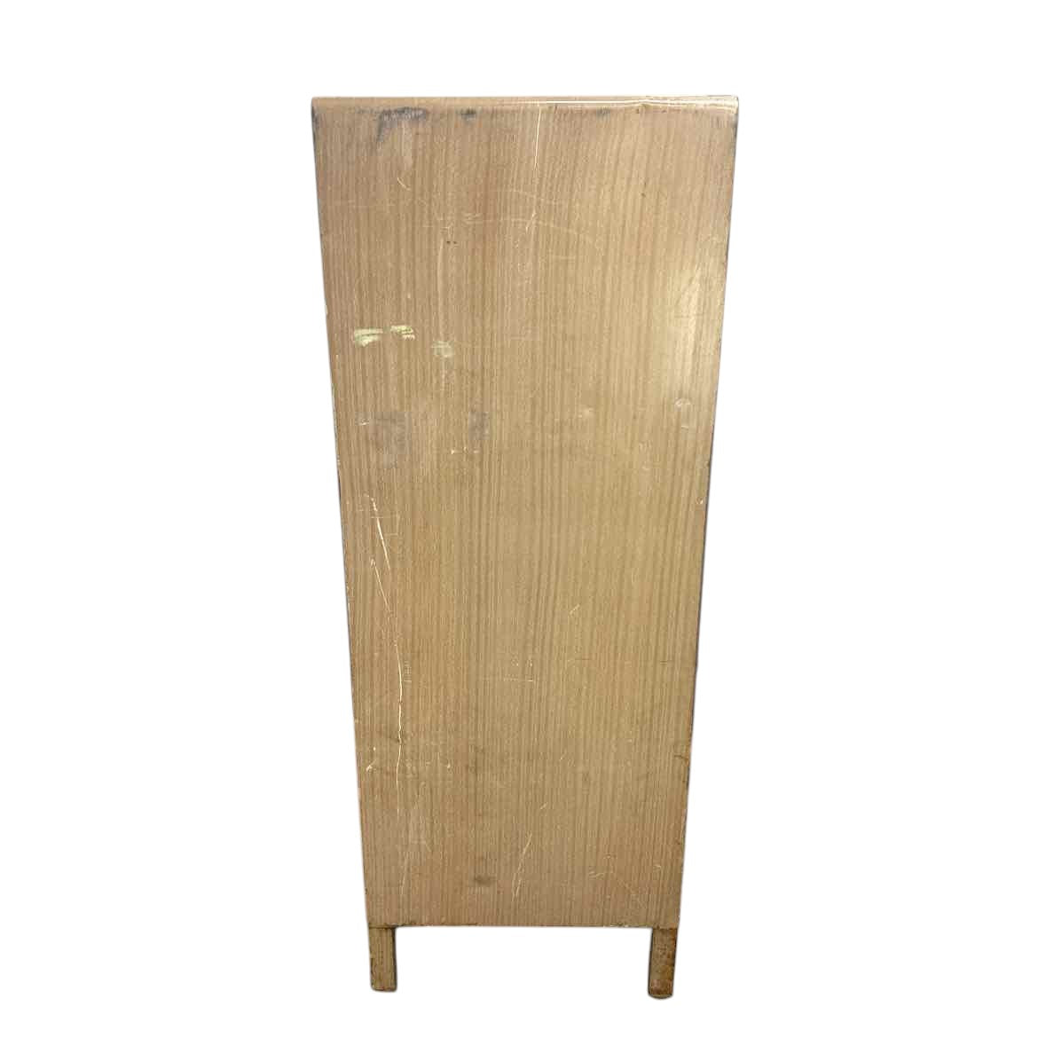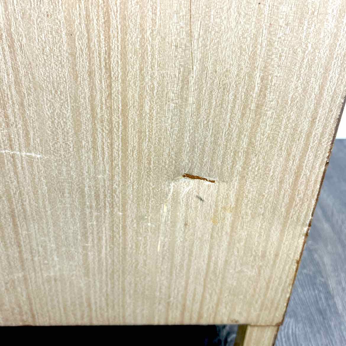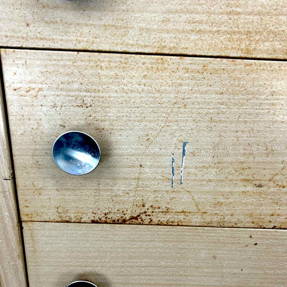 Faux wood 1930s metal chest of drawers by Simmons Furniture. This collectible piece has some finish wear from age, but is still cool looking and would look amazing refinished.