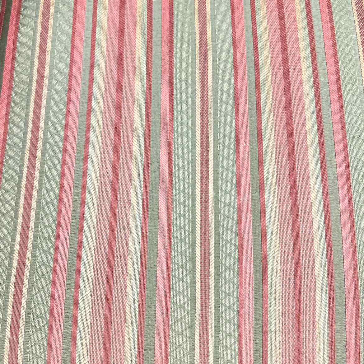 PAIR high back 1960s armchairs with muted green and pink-red striped upholstery that almost reads as brown from a distance. In overall good vintage condition and sturdy, with some small snags and light wear from age. Super sturdy for reupholstery.