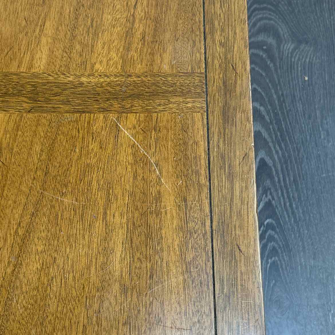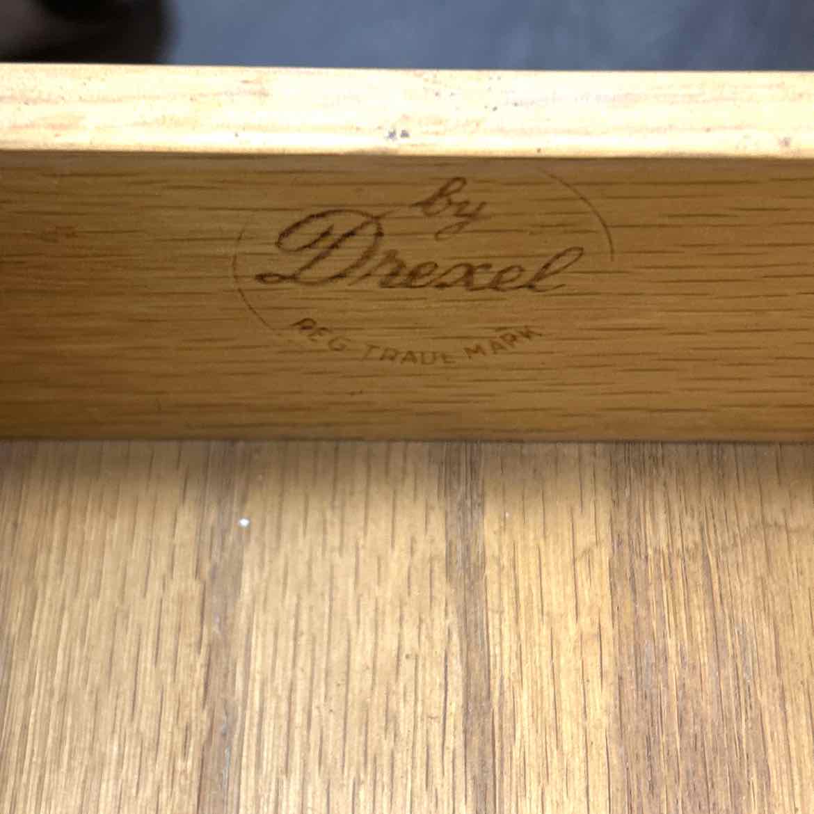 Drexel Triune traditional wooden coffee table with column legs and a nice medium tone, in very good vintage condition. | The sale of this item benefits Meals on Wheels in Midland, Texas.