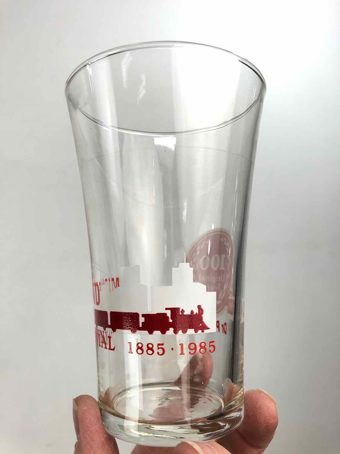 PAIR Midland Centennial tumbler glasses, perfect for a Midland native who loves iced tea. In excellent vintage condition with screen printed graphics in red and white.