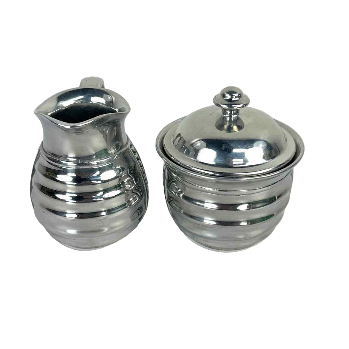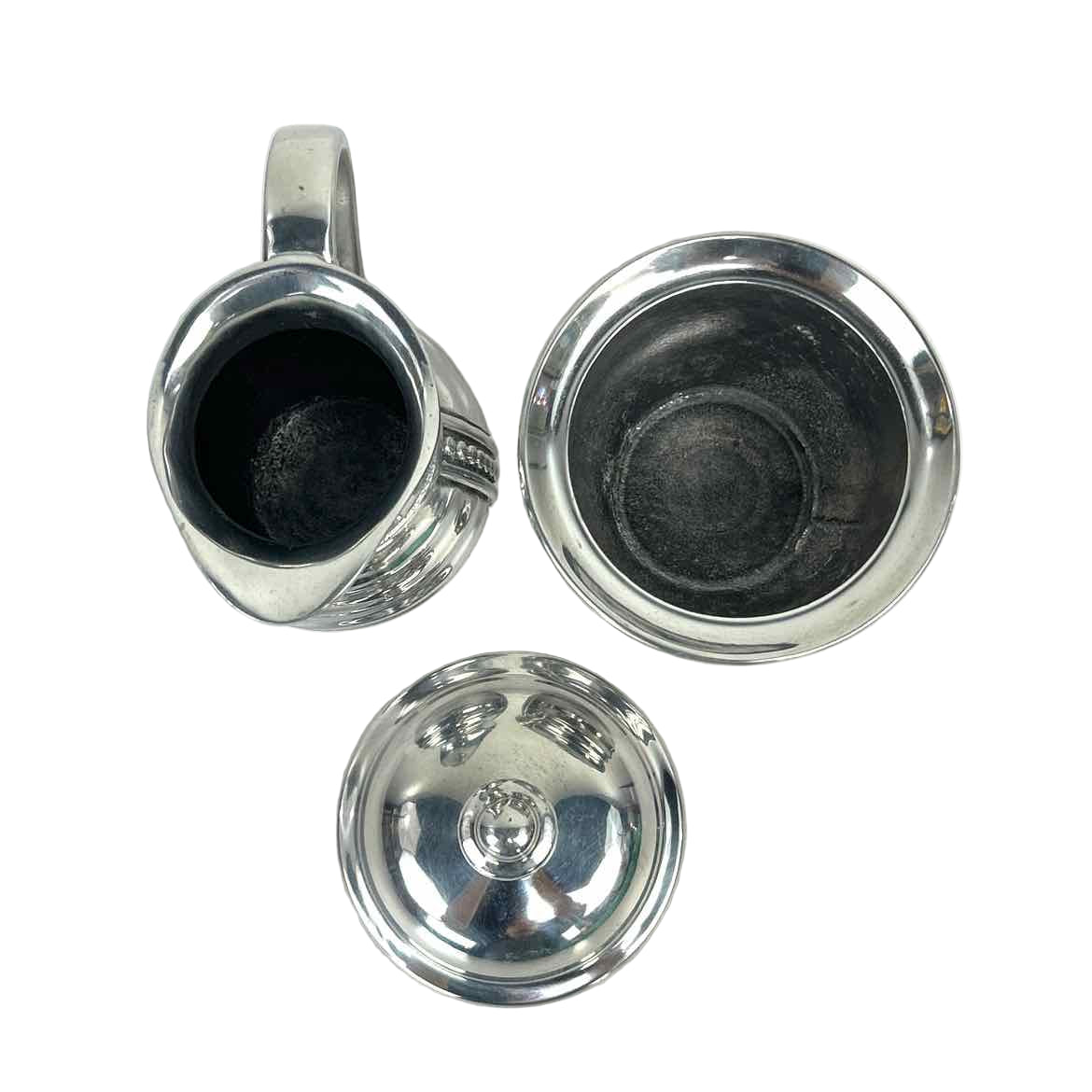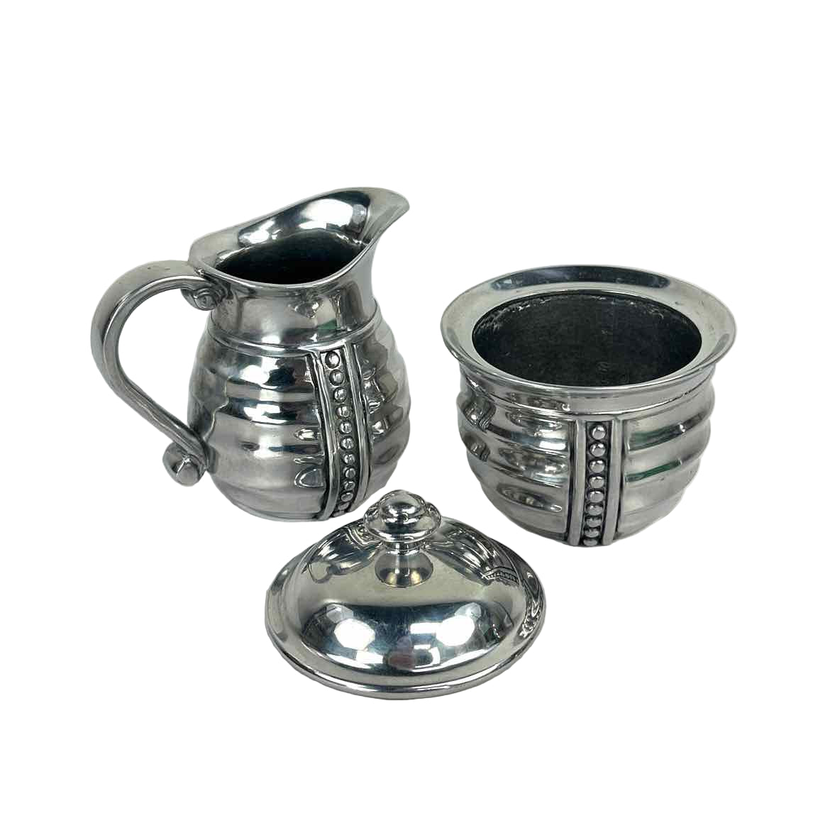 PAIR "Flutes and Pearls" pattern creamer and sugar bowl set by Wilton Armetale, in very good vintage condition. Made of solid pewter, these are a timeless classic.