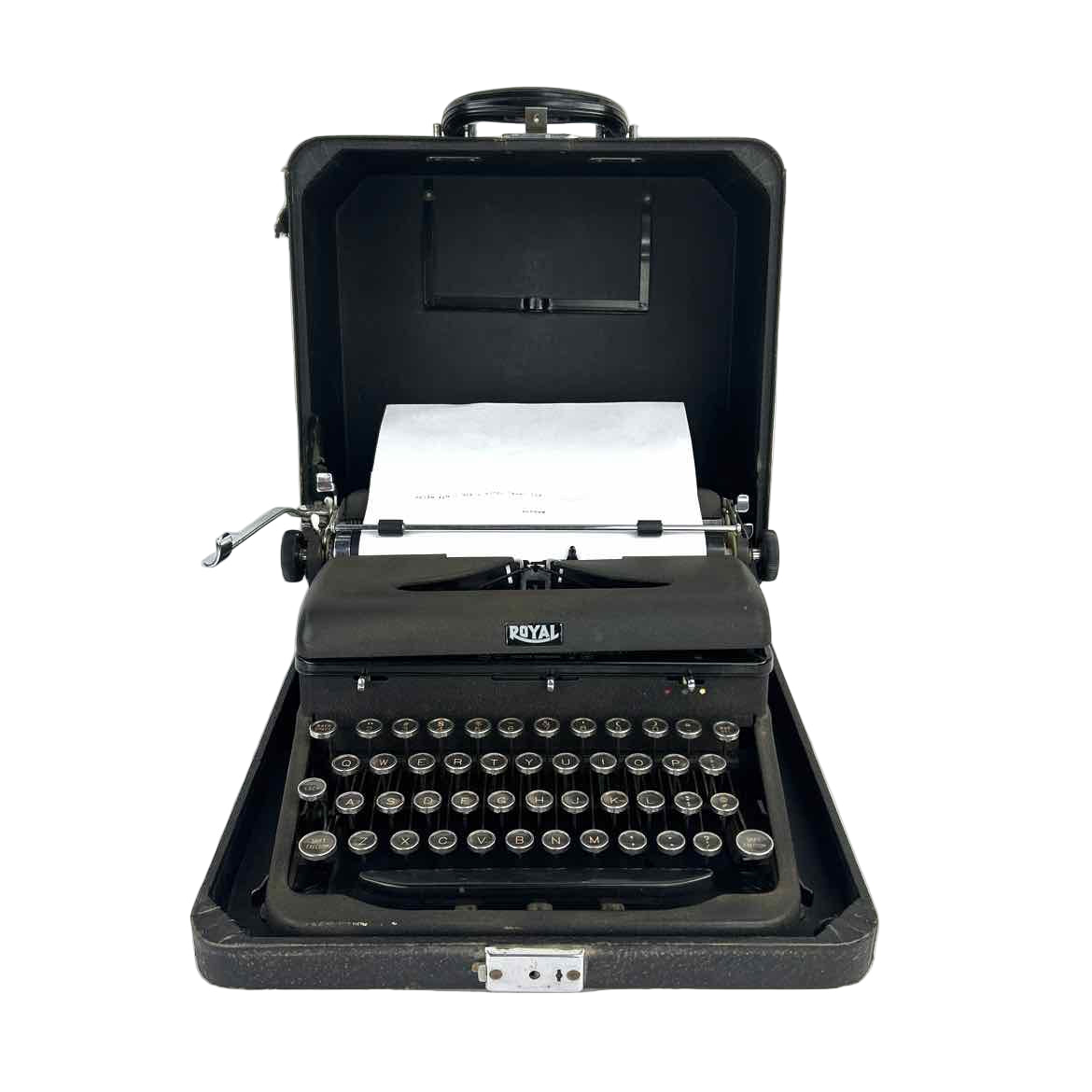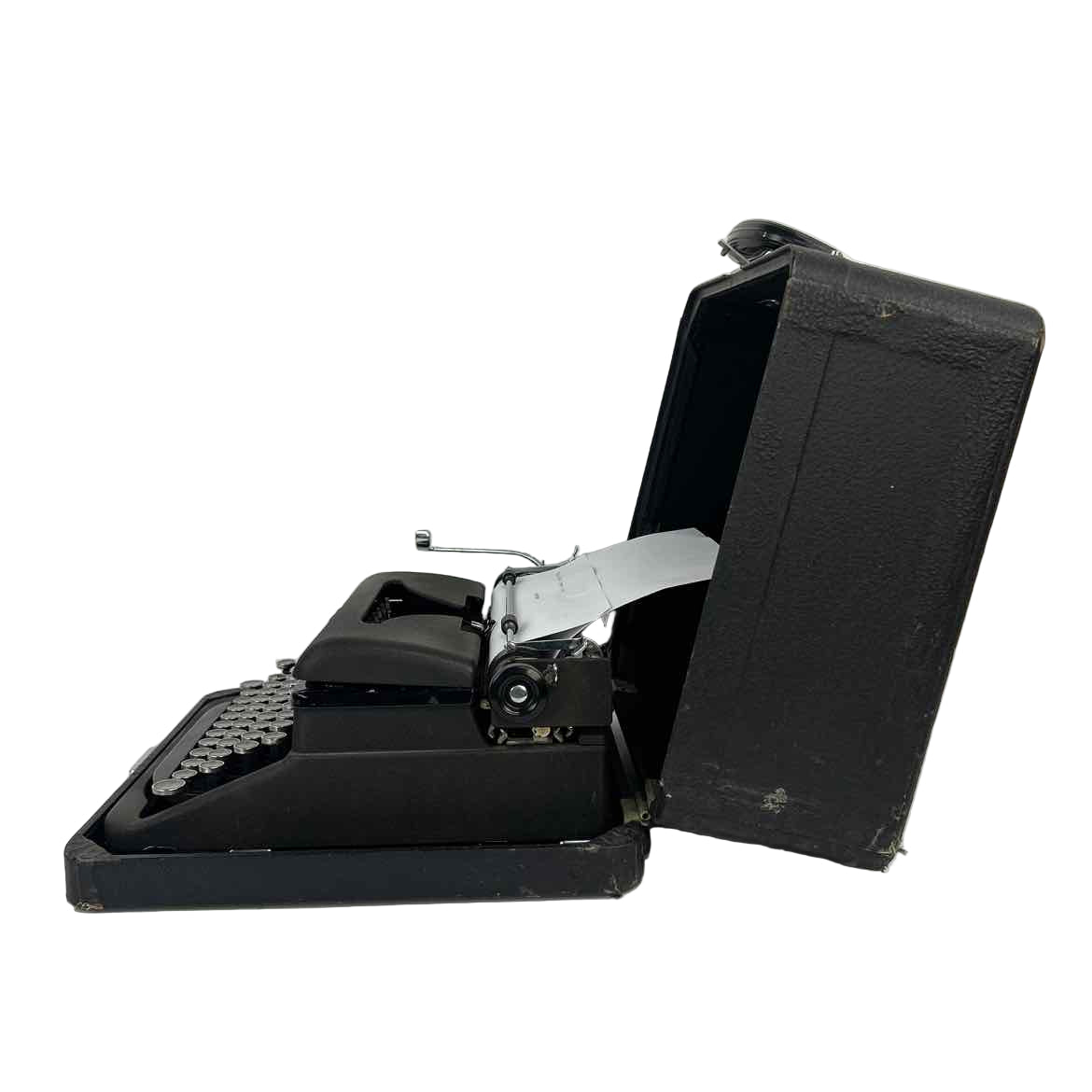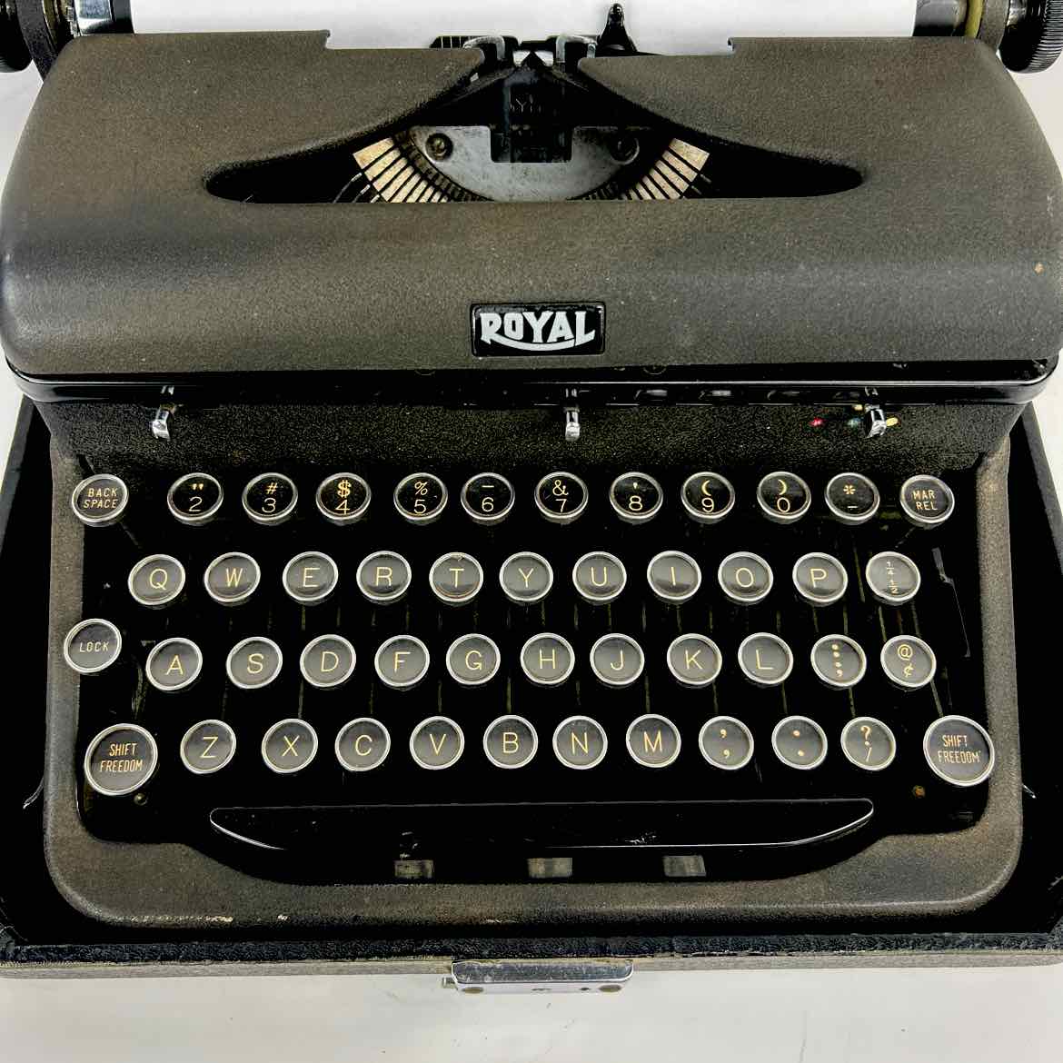 Antique WWII typewriter with round keys, made by Royal in 1939 and in overall very good vintage condition with some case wear and most likely in need of a ribbon.