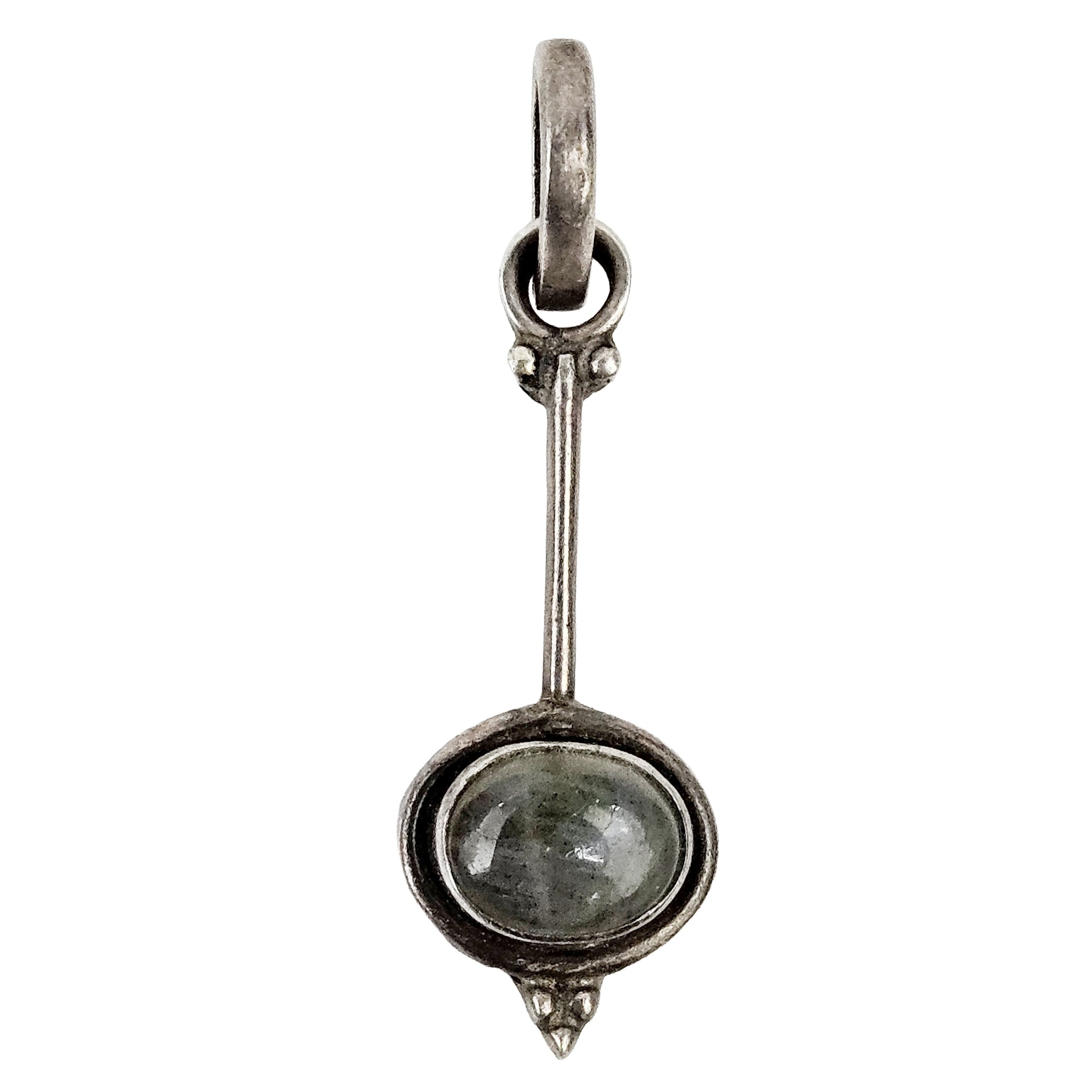 Modern sterling silver pendant with a stone that looks like laradorite or moonstone. In very good vintage condition with original patina. Can be polished to a higher shine. Stamped 925.