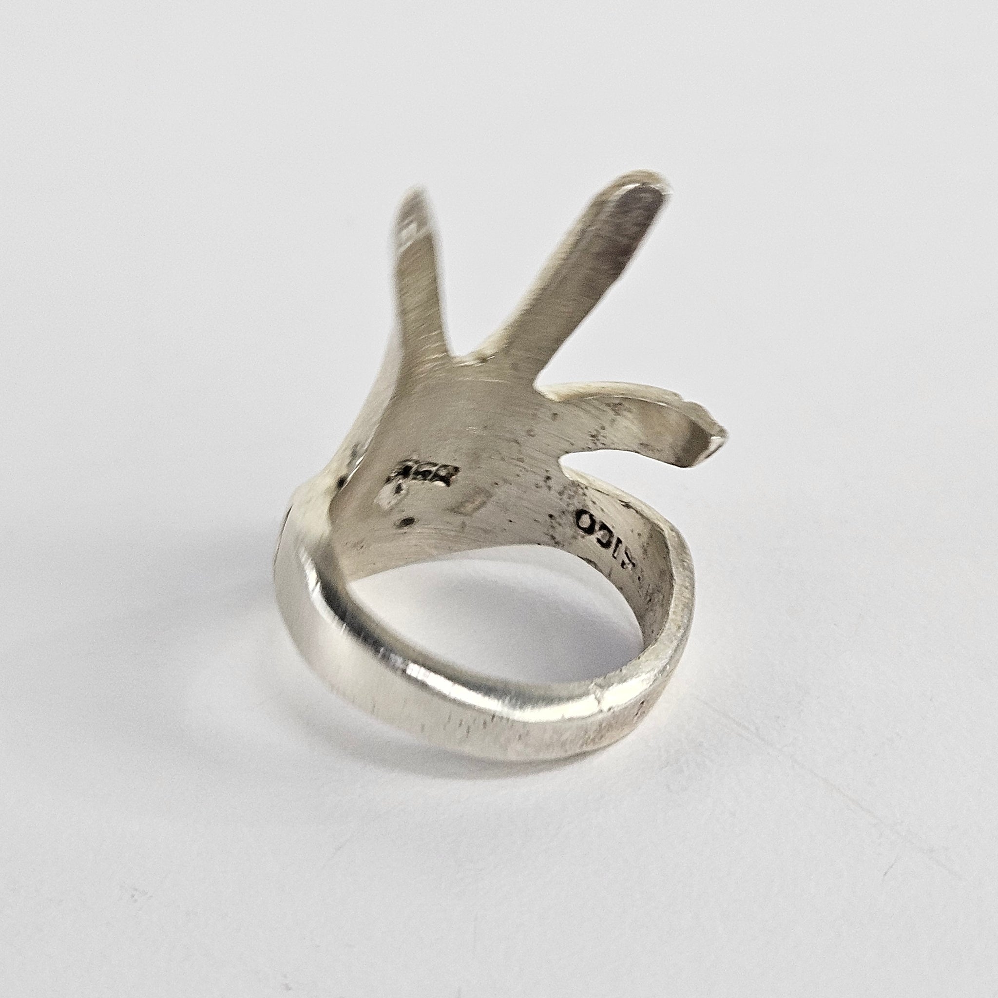 Large sterling silver hand shaped ring, made in Mexico and stamped .925 and with a number that looks like a Taxco number. In very good vintage condition.