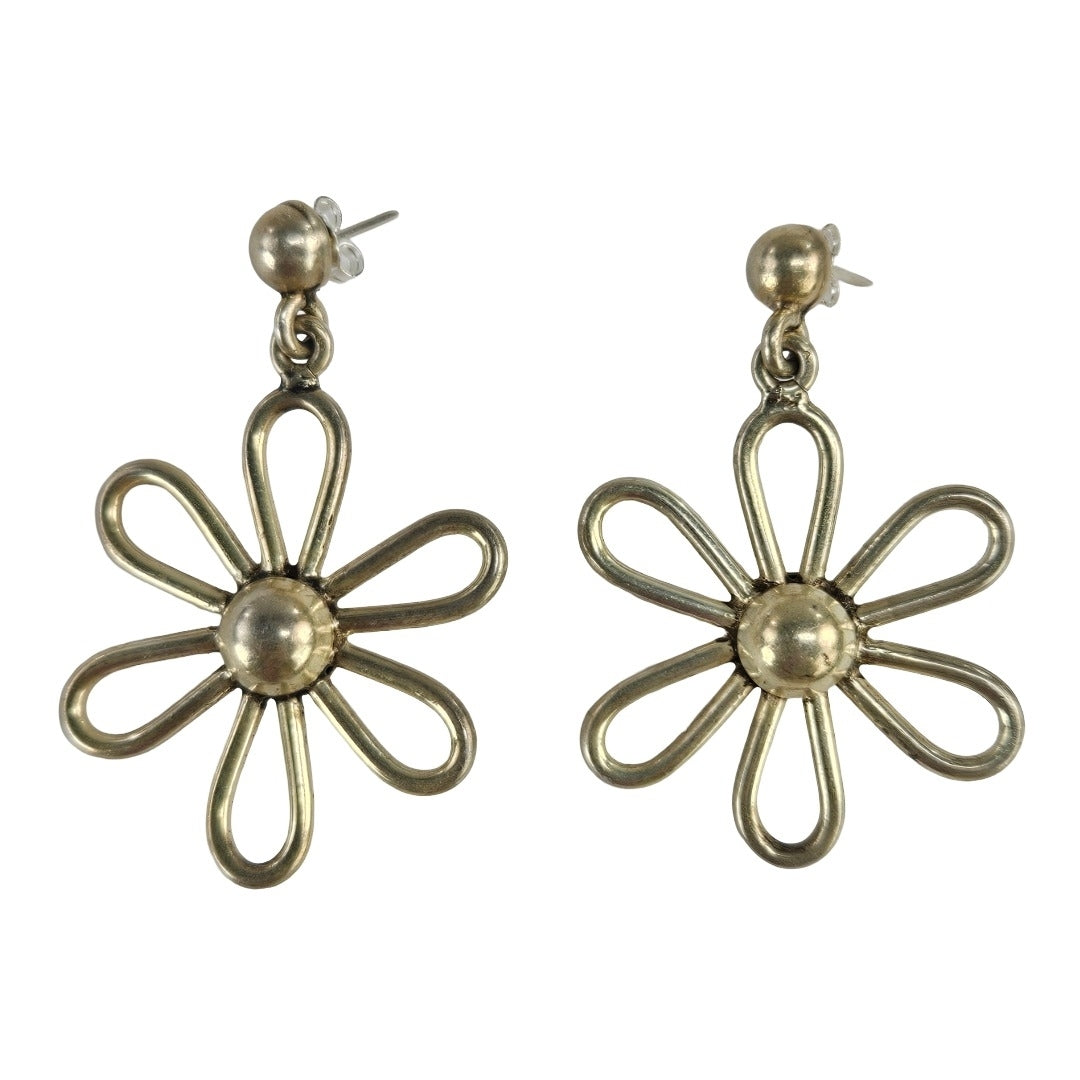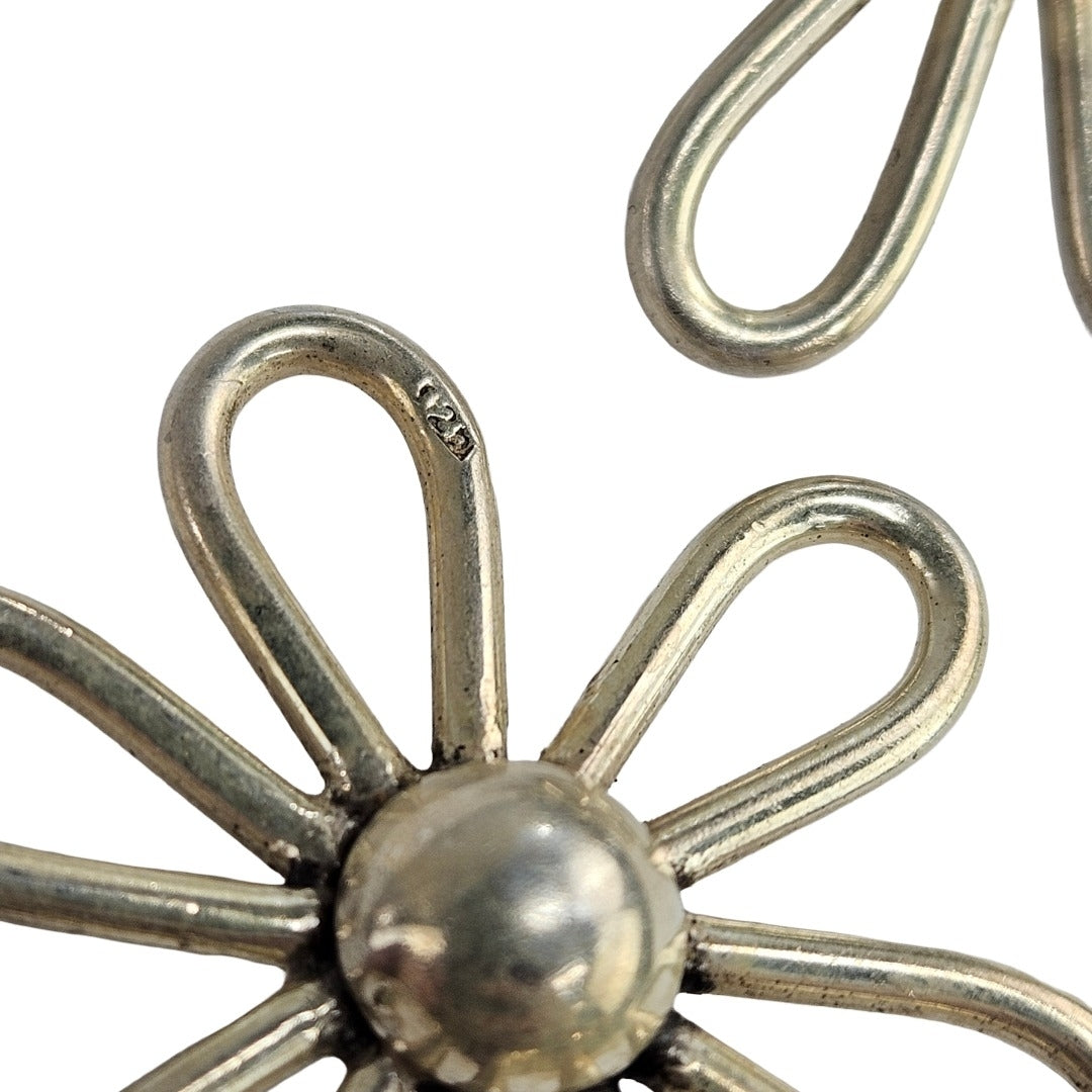 Large sterling silver retro daisy flower earrings with a freshly polished patina and brand new backs. In excellent vintage condition and perfect for a 1990s throwback outfit.