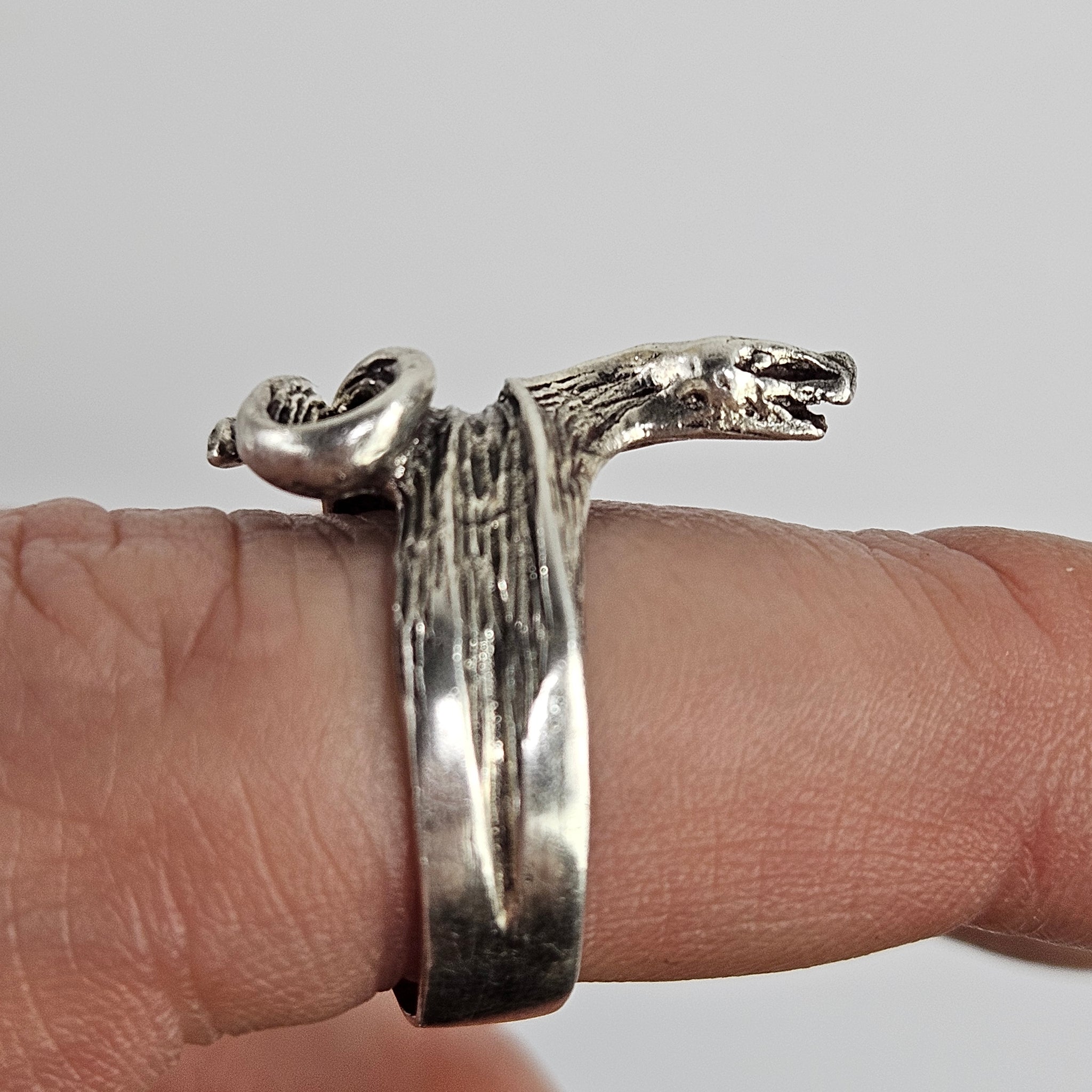 Sterling silver snake ring with lots of texture and style, in excellent vintage condition and stamped .925. Weighs 3.63g.