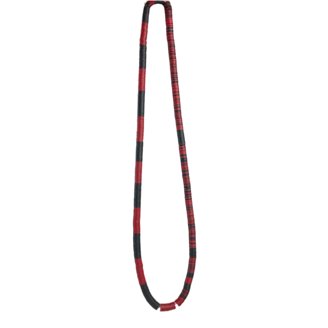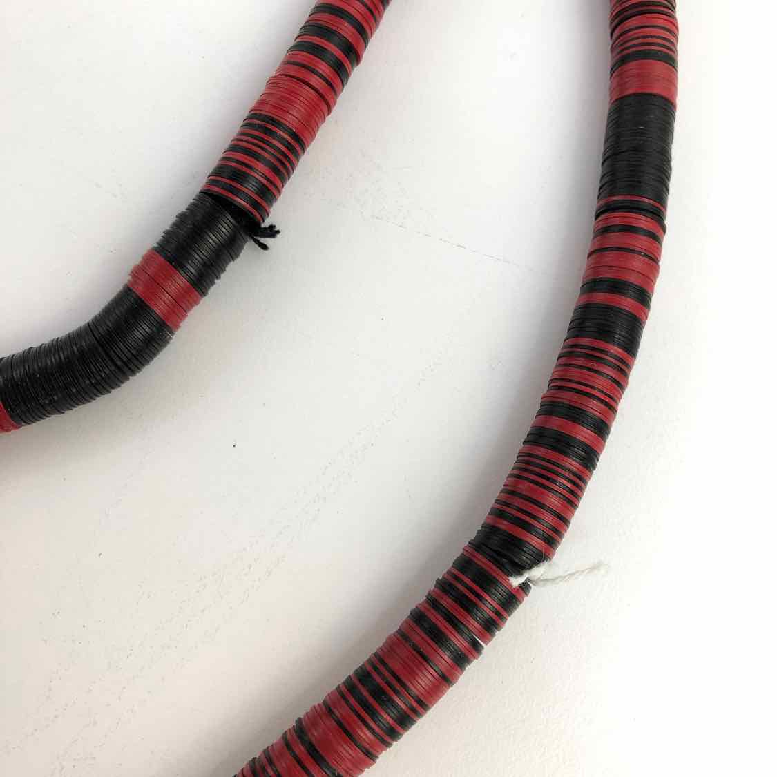 Single strand of African beads made of vulcanite, the material that was used to make vinyl records. Made in Mali, this strand is black and red. Can be worn as a necklace, used for crafting and jewelry making, or used for decor. Very good condition.