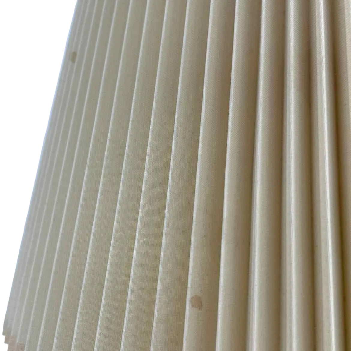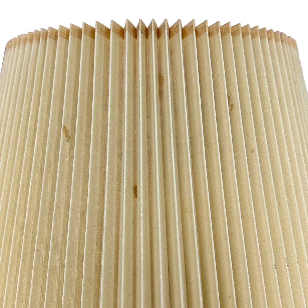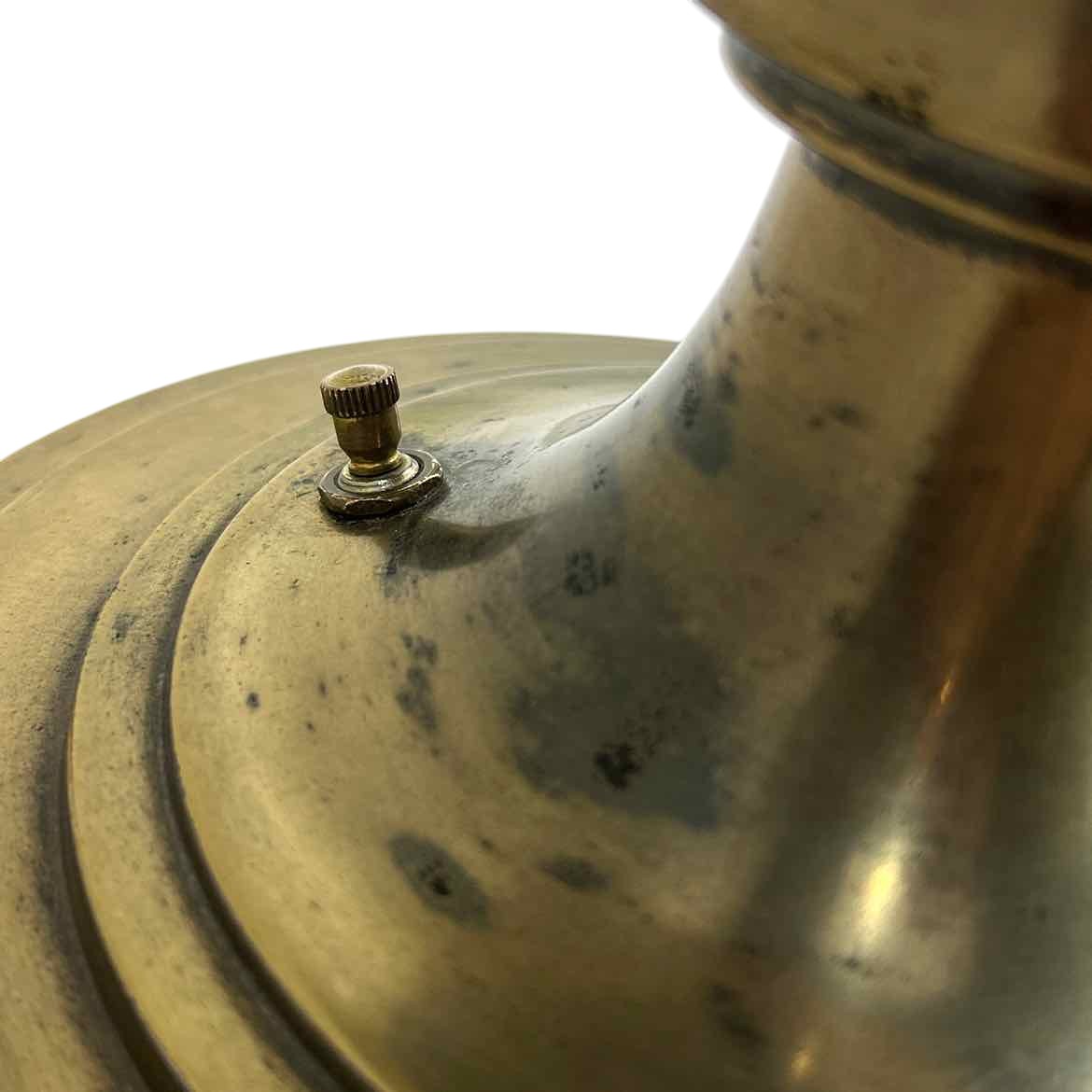 Heavy brass lamp with a trophy shaped body, a switch on the base, and ribbed vintage shade, in very good vintage condition.