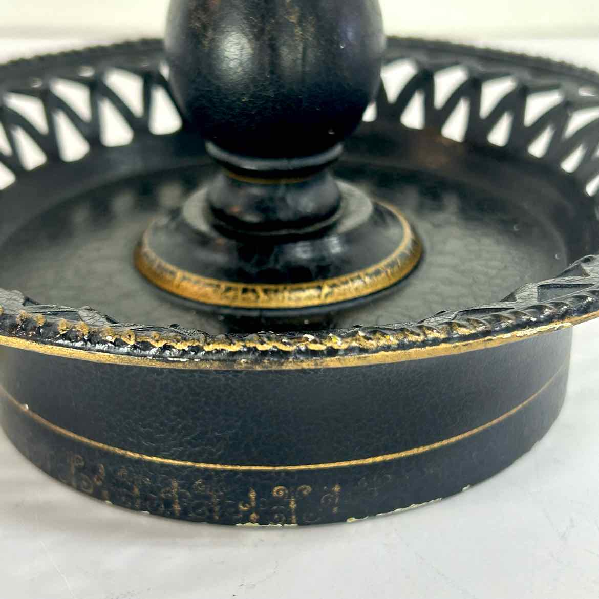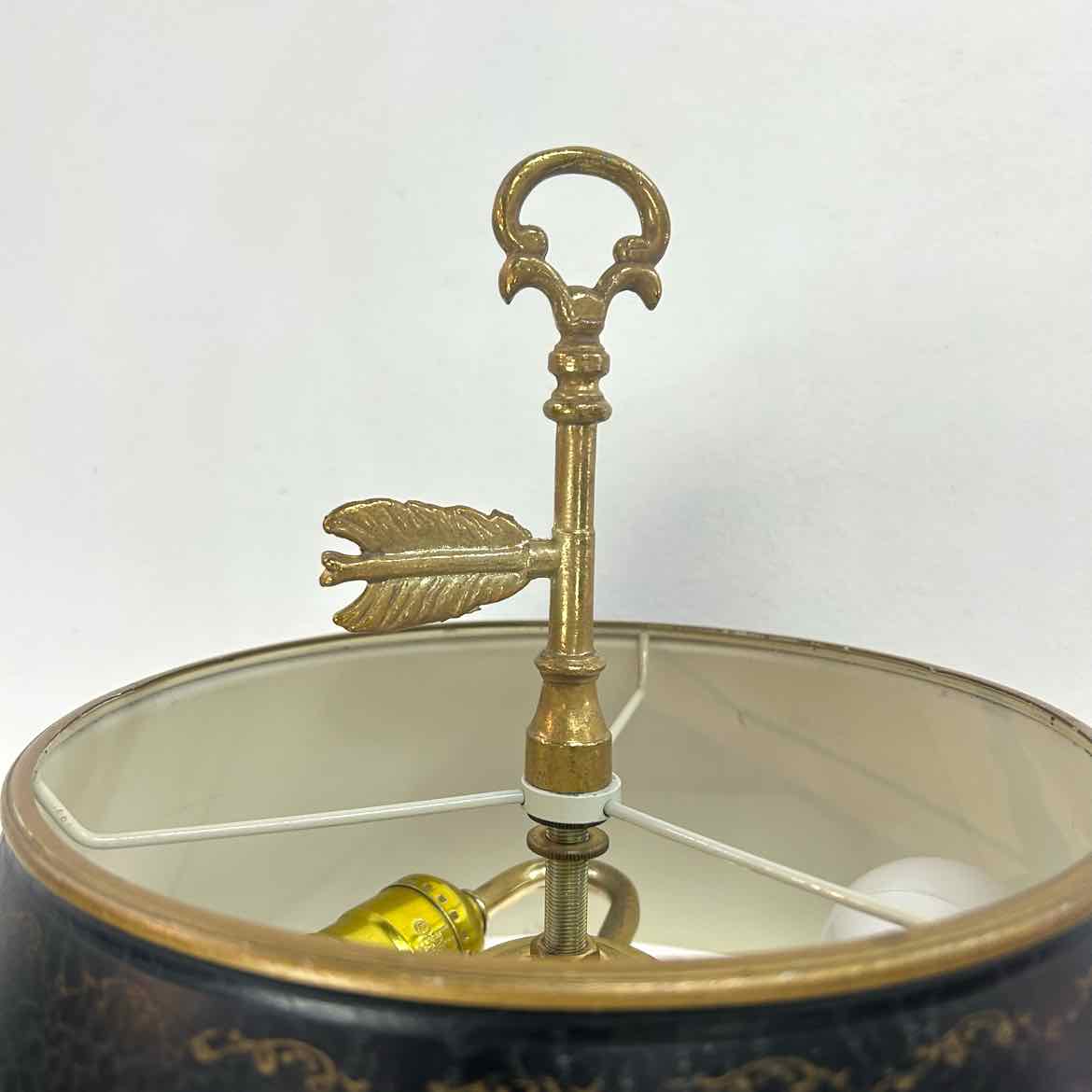 French bouillotte lamp in black metal with gold trim and crackle texture. In very good vintage condition with a few small scratches and wear from age as shown. Contact for shipping.