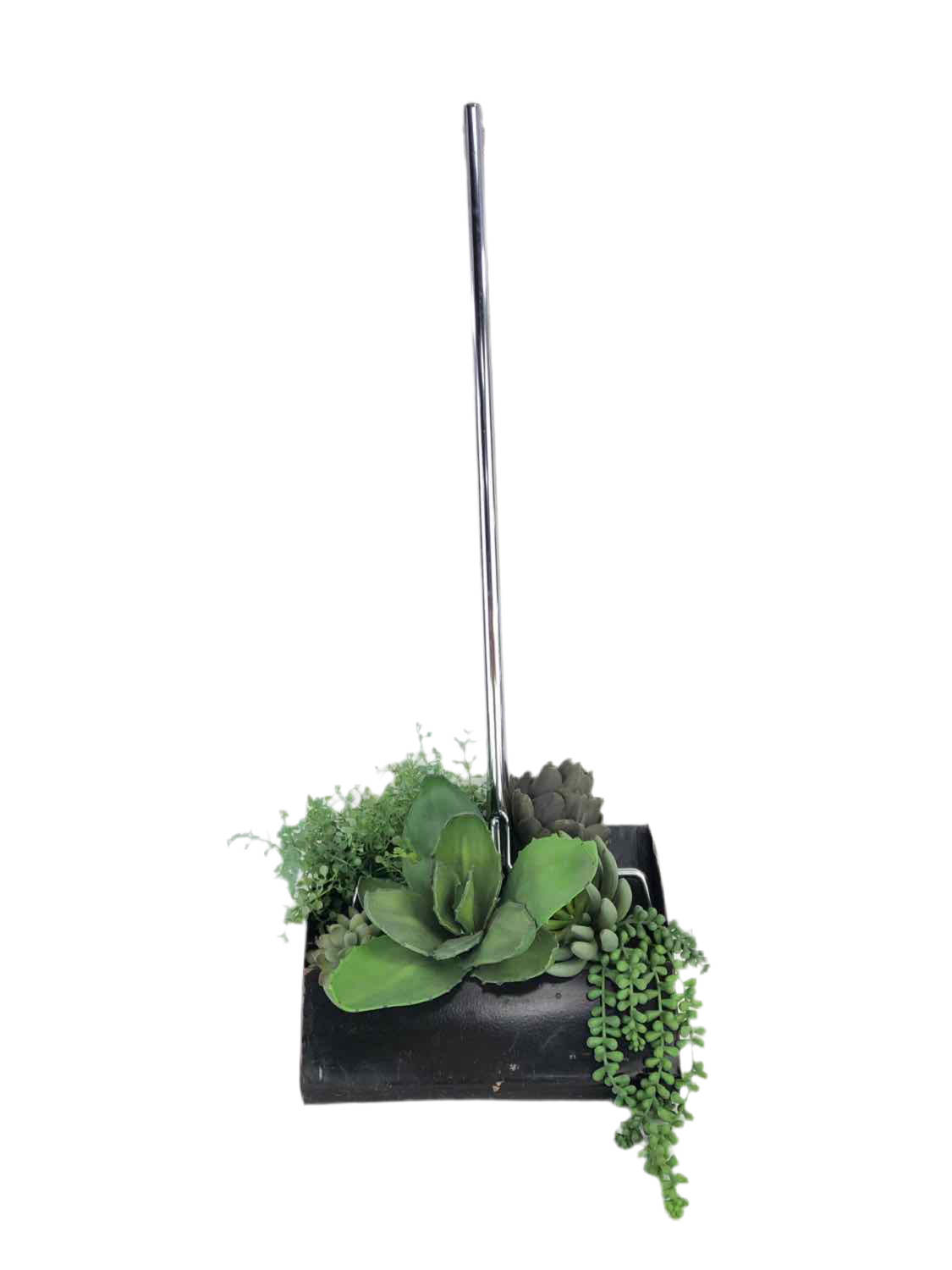 Vintage metal dustpan with chrome handle and chippy play pan, in good vintage condition with a nice swivel function. These also look cute hung on a wall with plants!