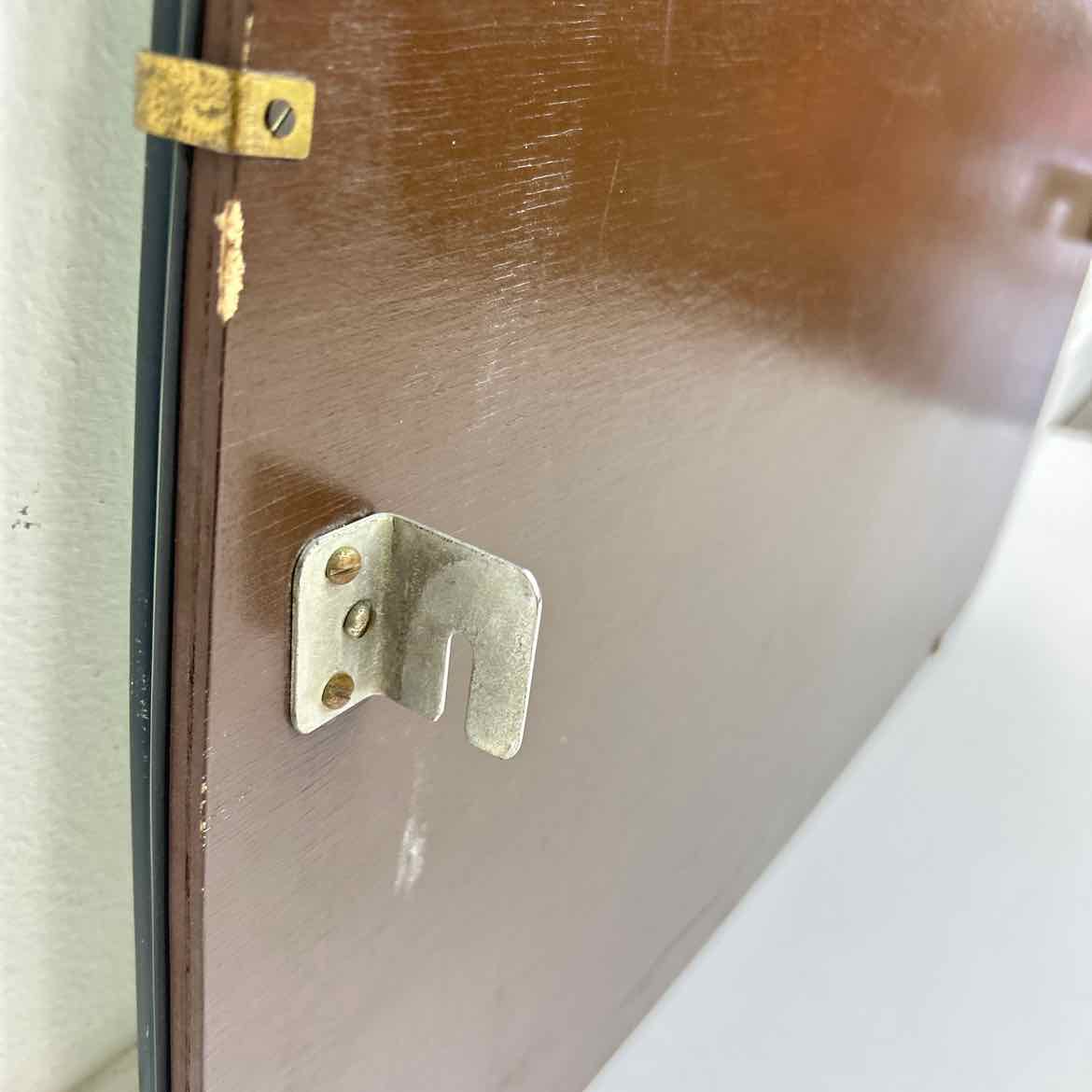 Mid-century mirror with an organic shape, mounted on wood. In very good vintage condition, but will need some different hardware to hang on a wall. Can be leaned on a mantle as it is. Local pickup only.
