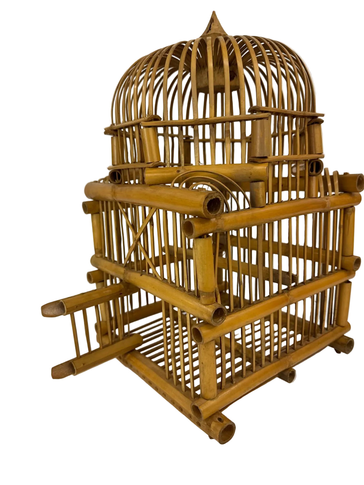 Vintage bent rattan bird cage sculpture. Makes a great decor item in a bohemian space. Clean and in very good vintage condition, never used for a real bird.