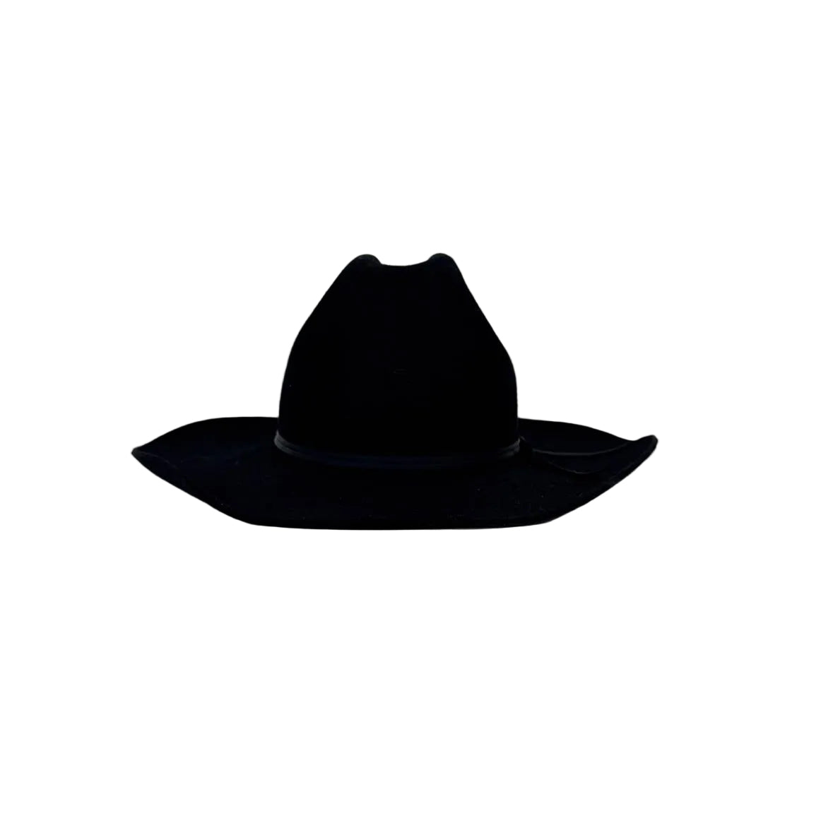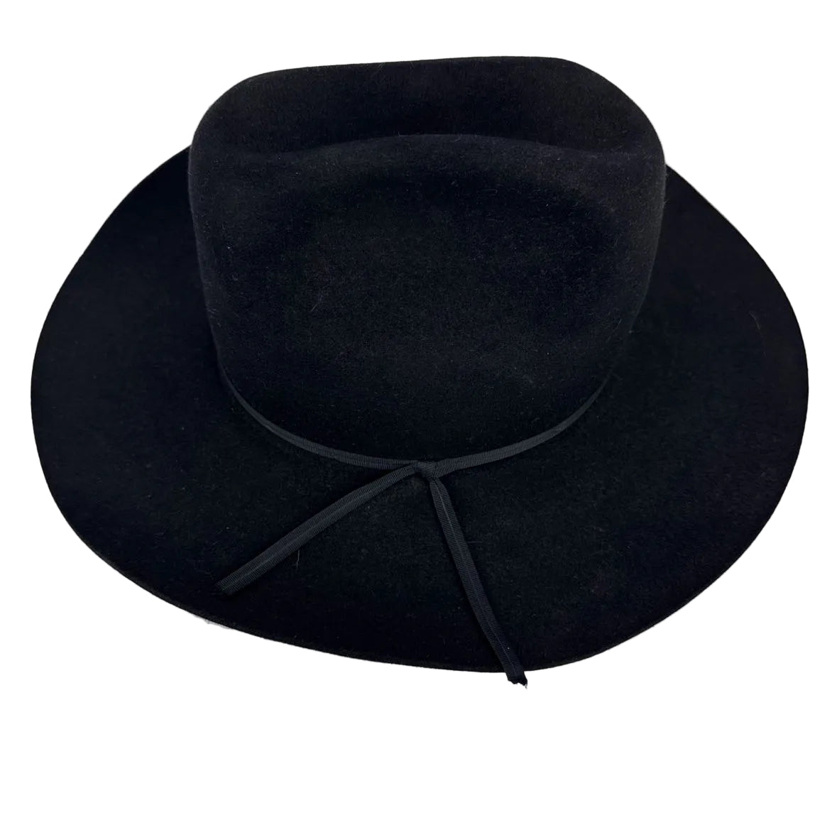 Vintage black custom made child size felt cowboy hat in good vintage condition. Labeled The Angelo by Hatatorium, and 100% Genuine Fur. The rim has some slight bending as shown.