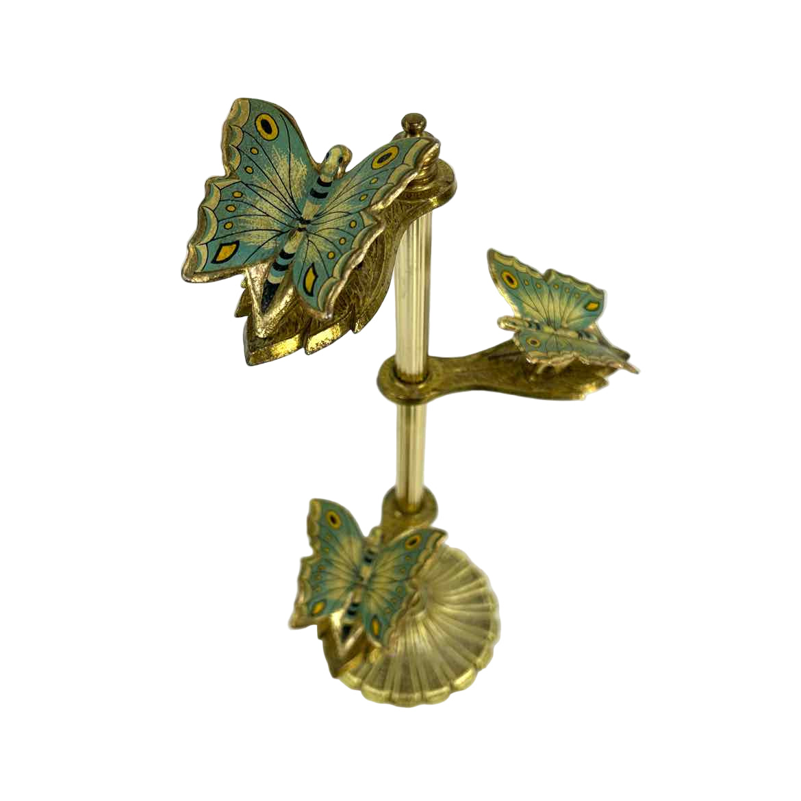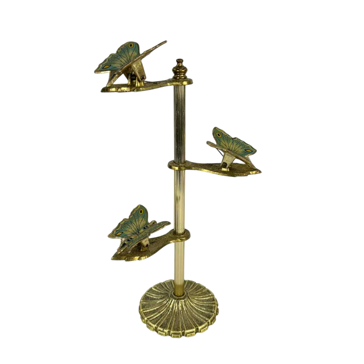 Gorgeous brass stand with note clips in the shape of butterflies, in very good vintage condition. Perfect for holding notes or Christmas cards.
