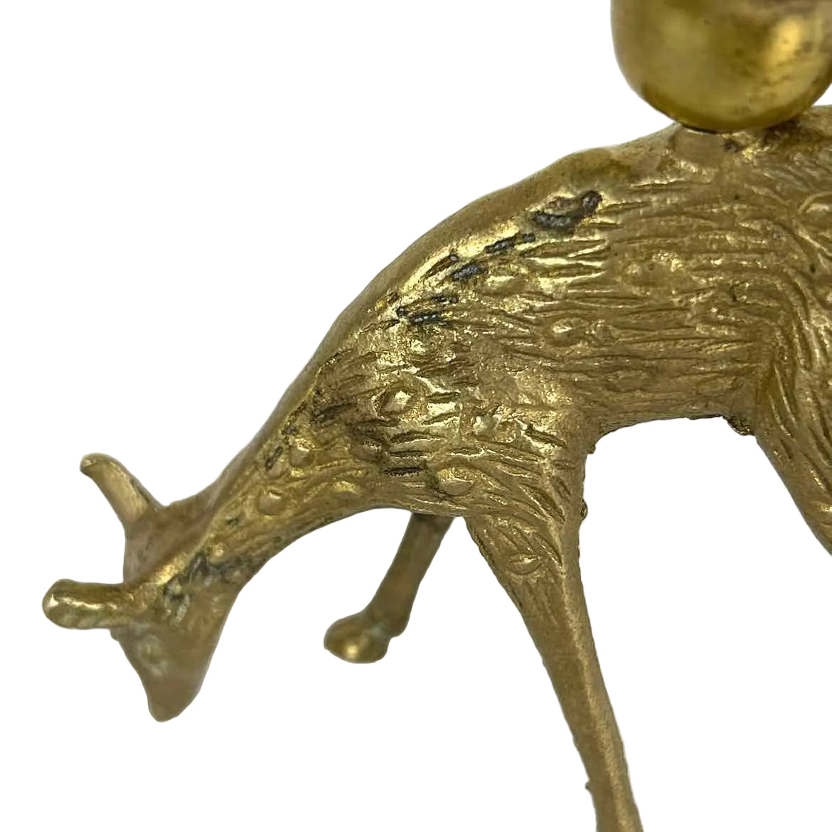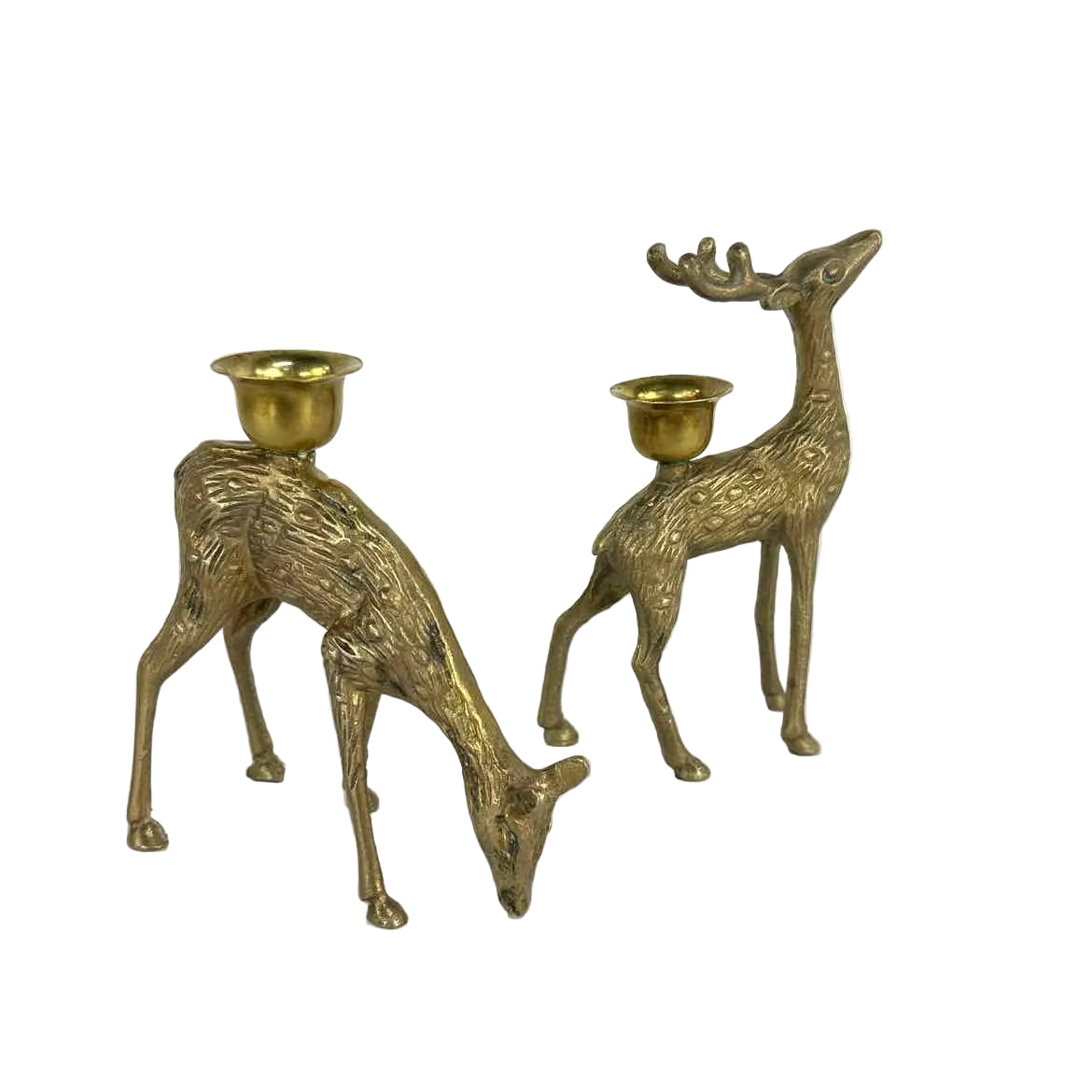 PAIR nicely detailed brass deer candleholders, a doe and a stag, in excellent vintage condition with original patina. Could be polished to a high shine.