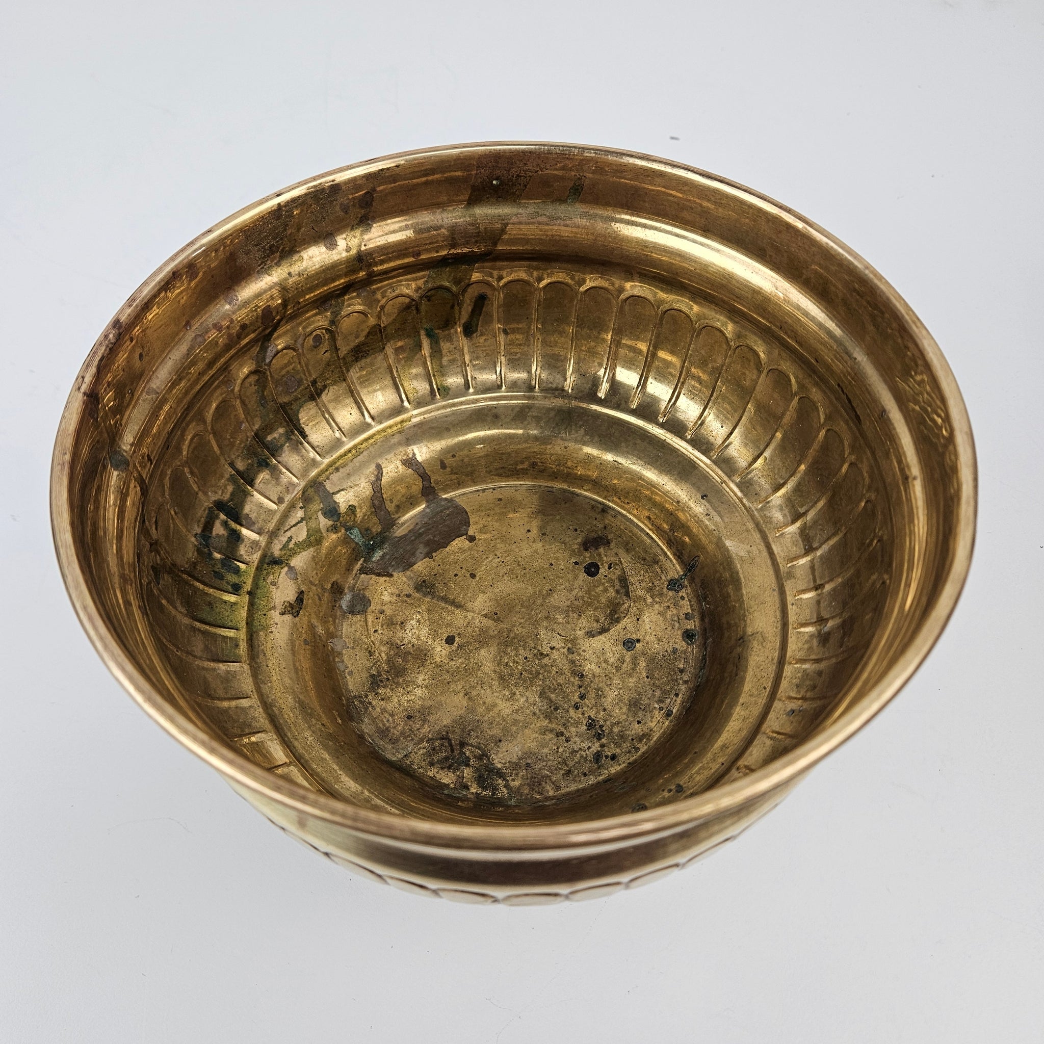Brass footed bowl planter with nice details and a classic design, in very good vintage condition with a polished patina that still has some flaws. This is a beautiful and timeless piece, perfect for an orchid centerpiece, or a fruit bowl.