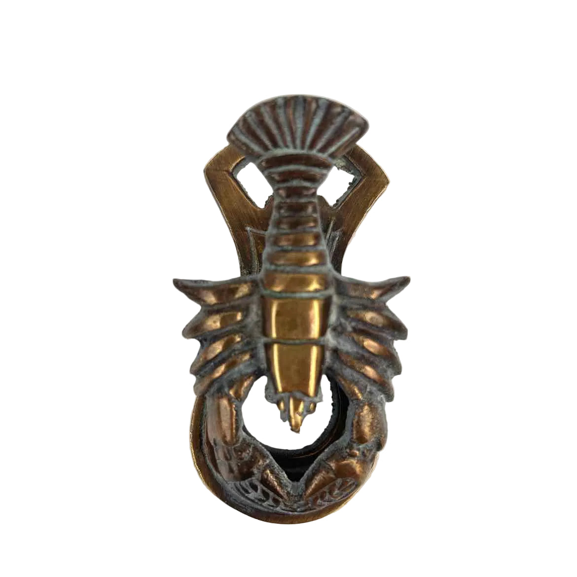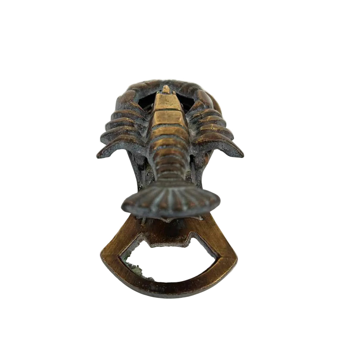 Small but quirky brass lobster or crayfish memo clip with a coppery bronze patina, in very good vintage condition. Can also hang on a wall or be used as a bottle opener.