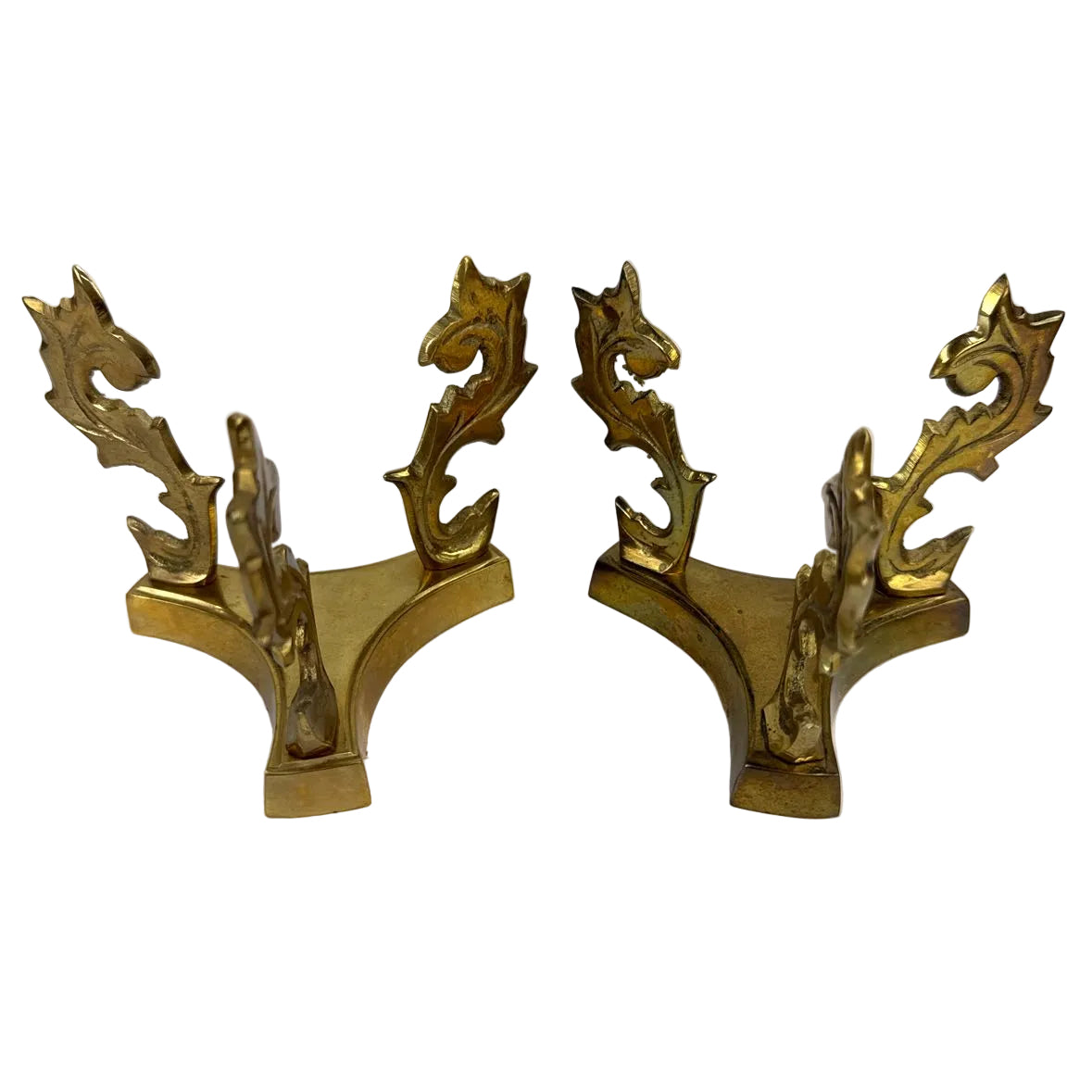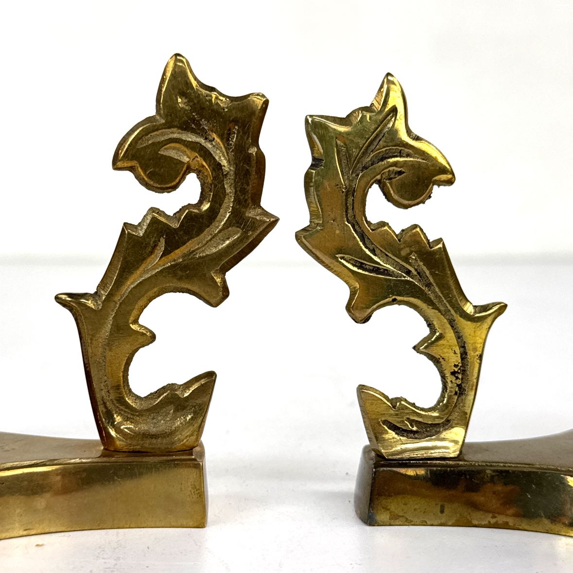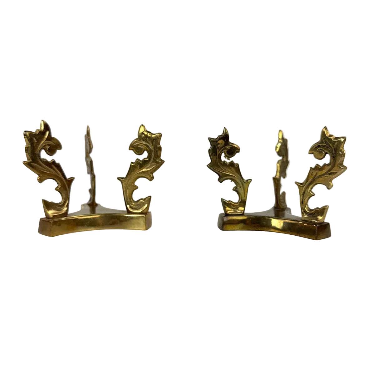 PAIR of vintage ornate brass stands/holders with leaf details sturdy enough to hold a marble sphere or an ostrich egg.