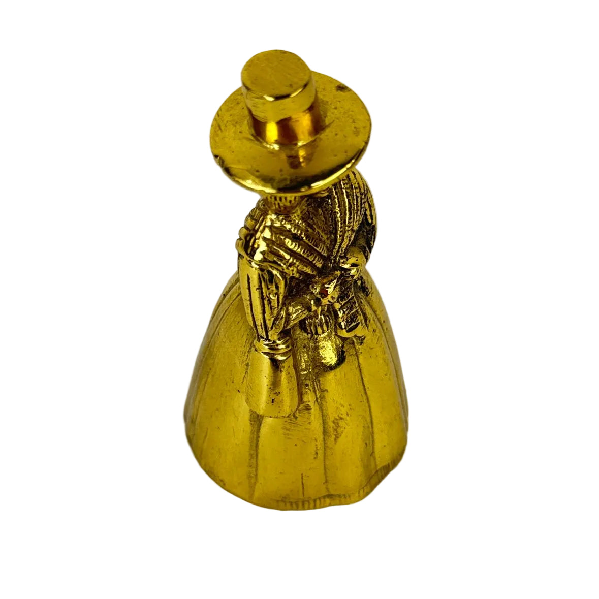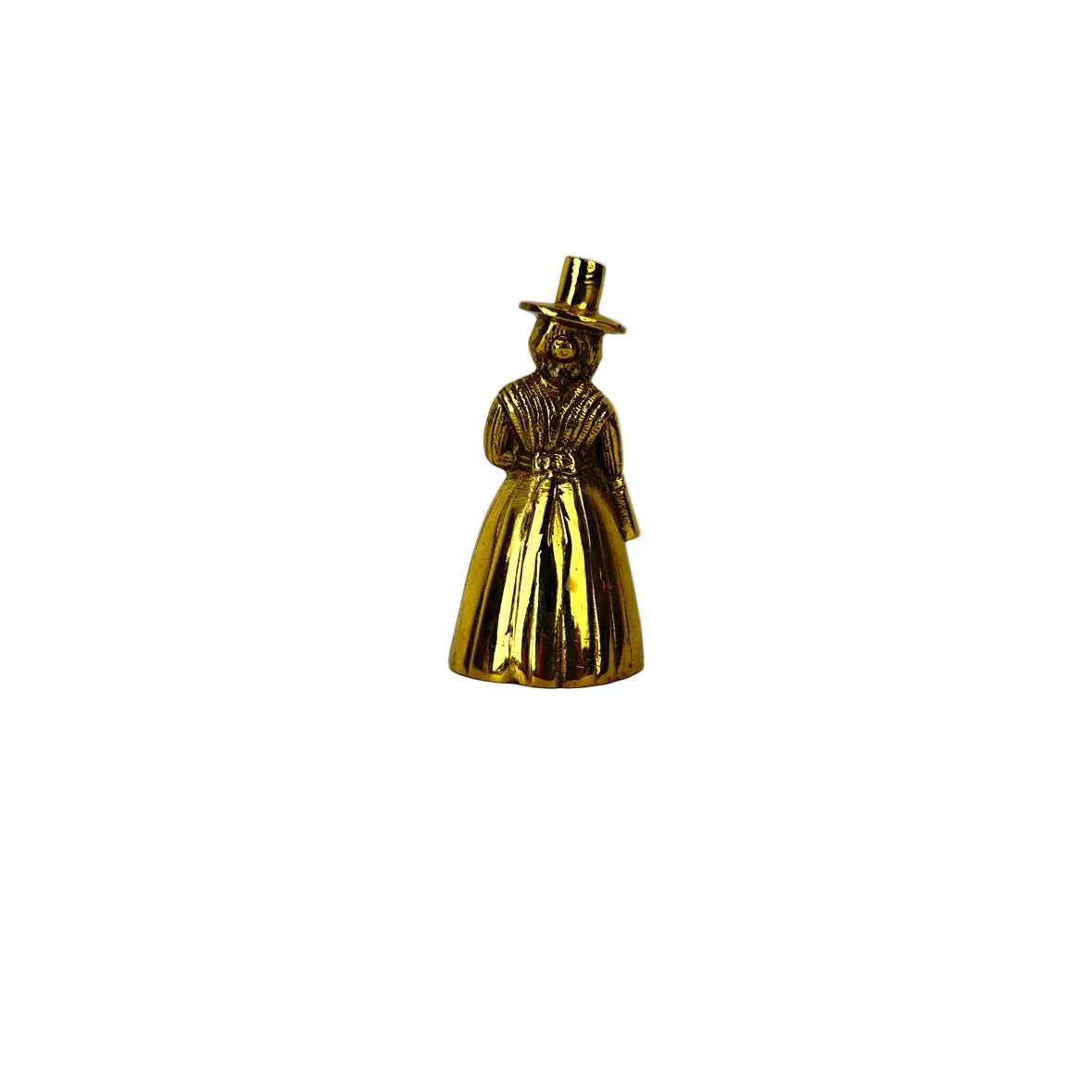 SINGLE brass bell in the shape of a Welsh woman in a hat with a long dress, in very good vintage condition with original patina. | The sale of this item benefits Meals on Wheels in Midland, Tx.