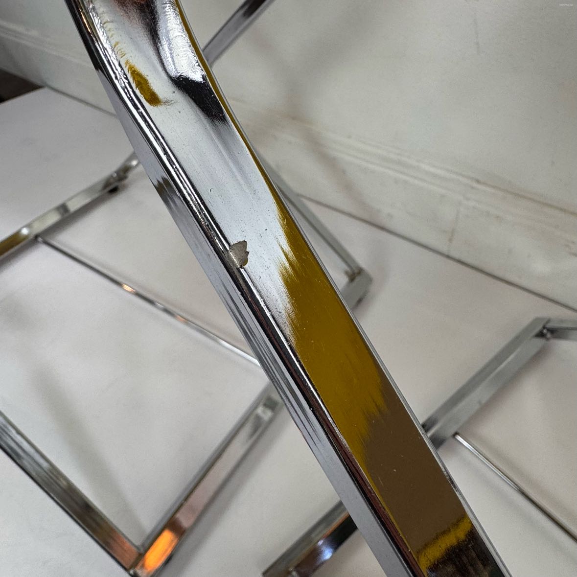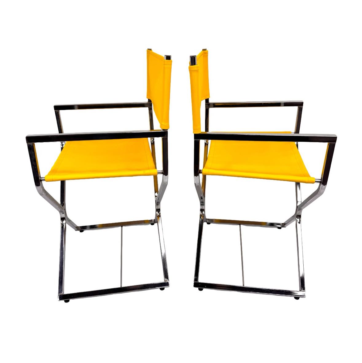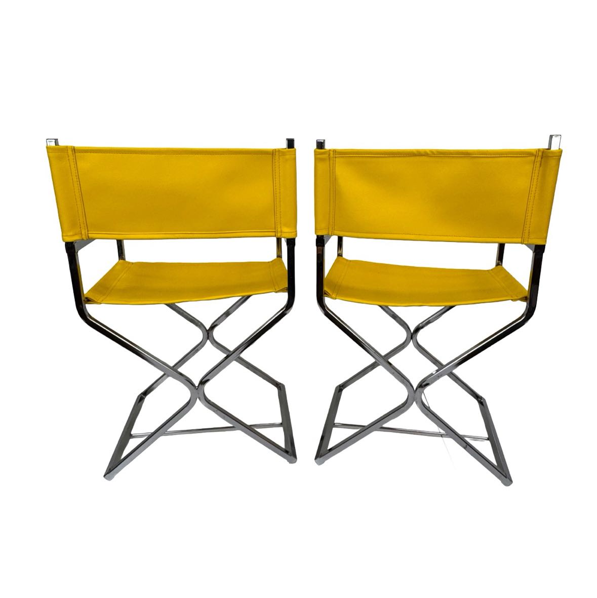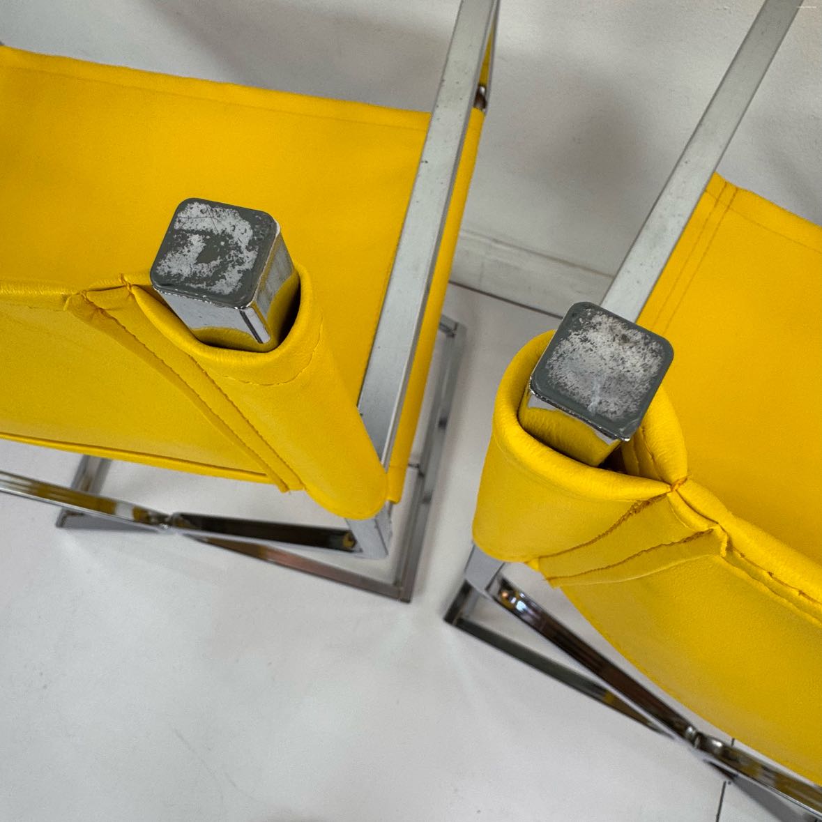 PAIR director's chairs c. 1970s with brand new yellow vinyl upholstery. The chrome has been cleaned up but has some light surface rust and wear from age. Very cool and modern!