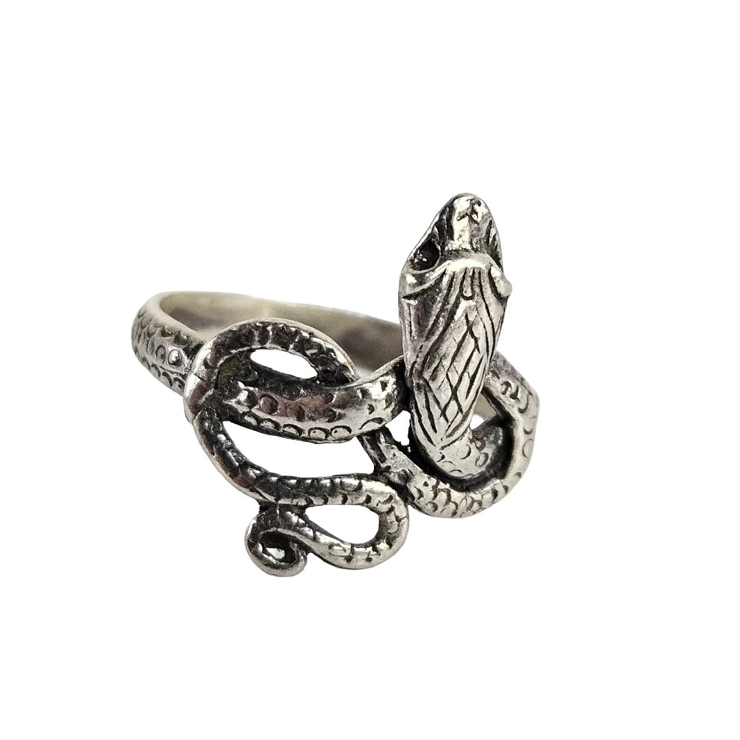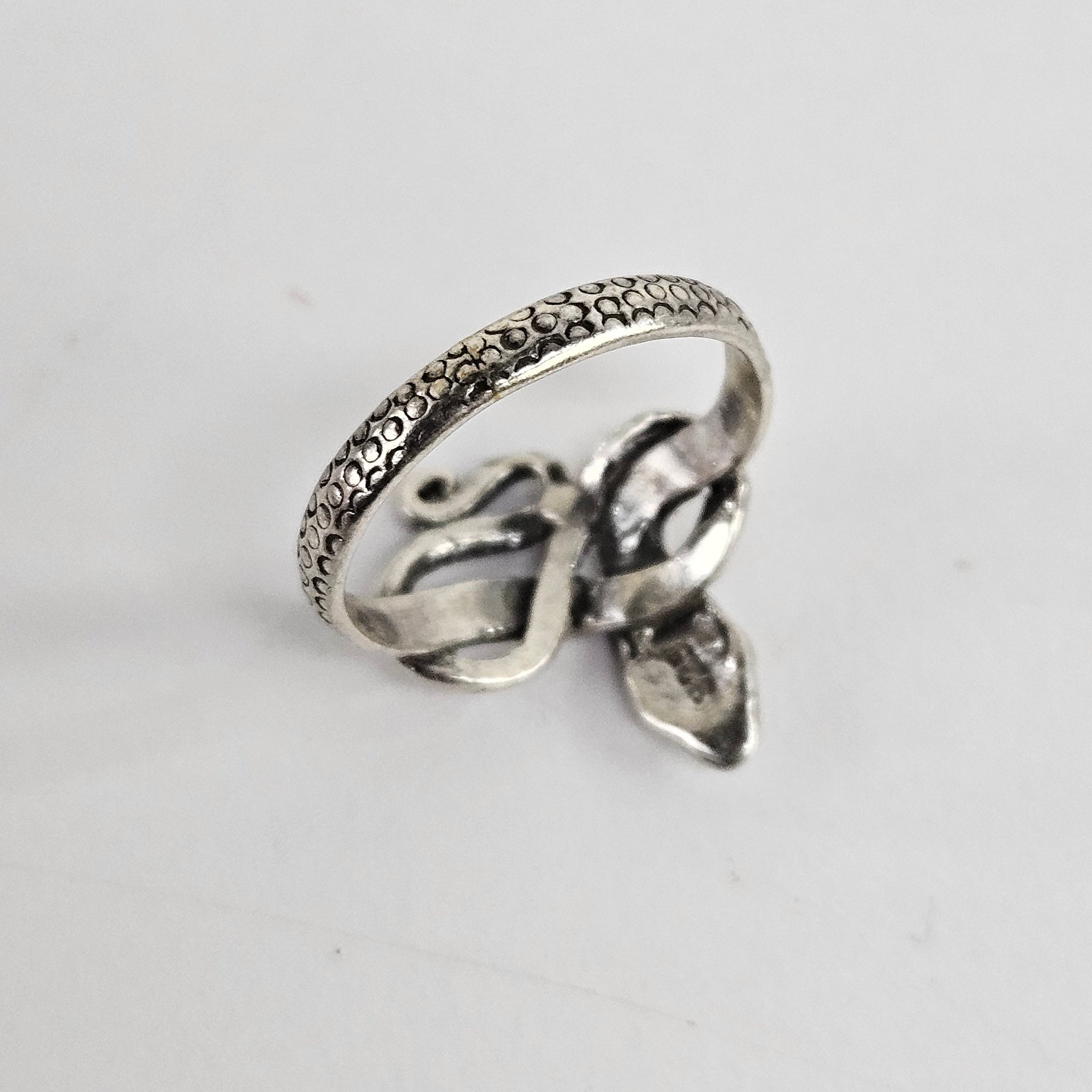 Sterling silver snake ring with lots of fine details, curves and style, in excellent vintage condition and stamped .925.