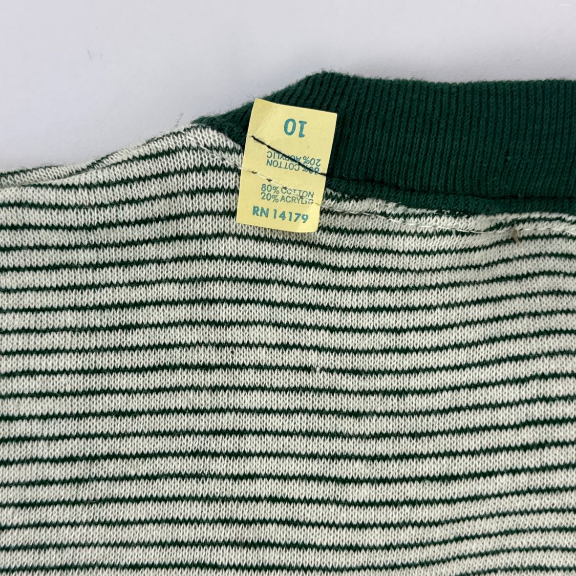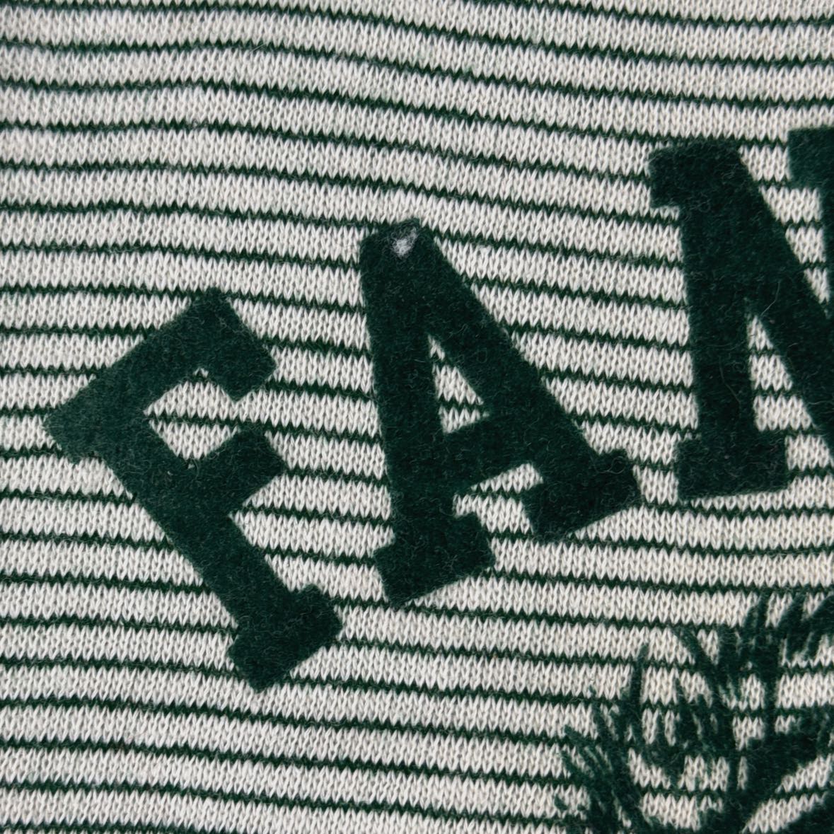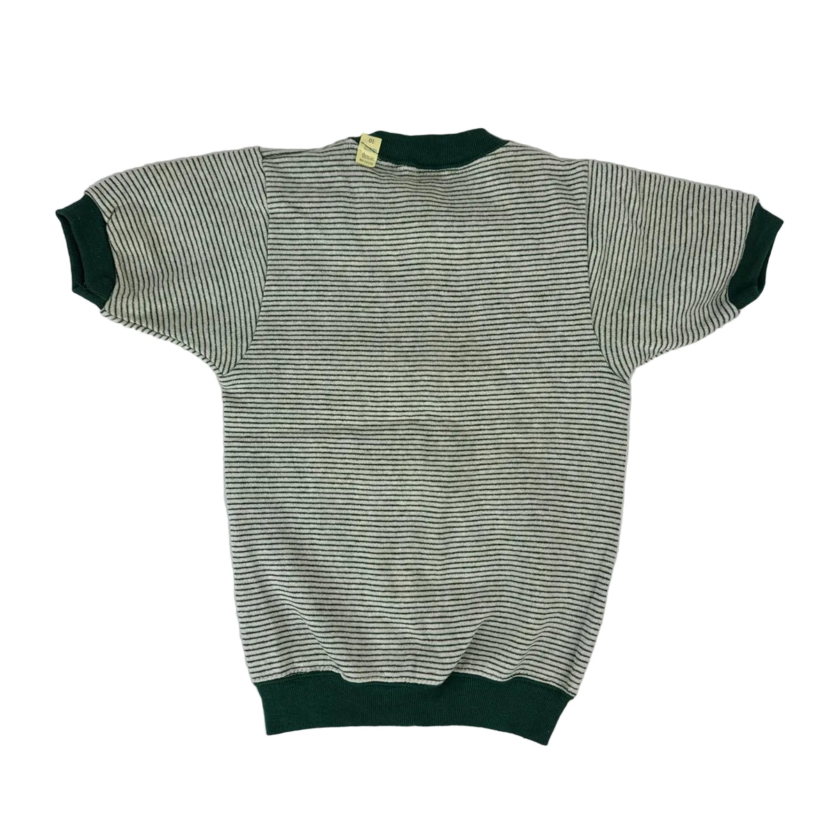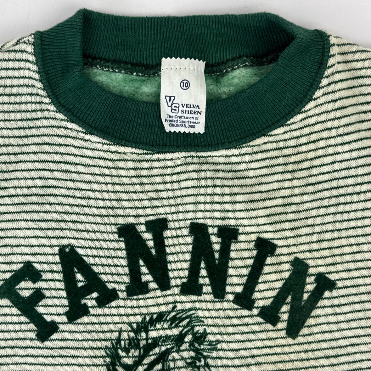 Super retro and soft short sleeve striped ringer sweatshirt from Fannin Elementary in Midland, Texas. It has a hunter green and white design with flocked mustang logo and the original tag on the collar. Size Youth 10.