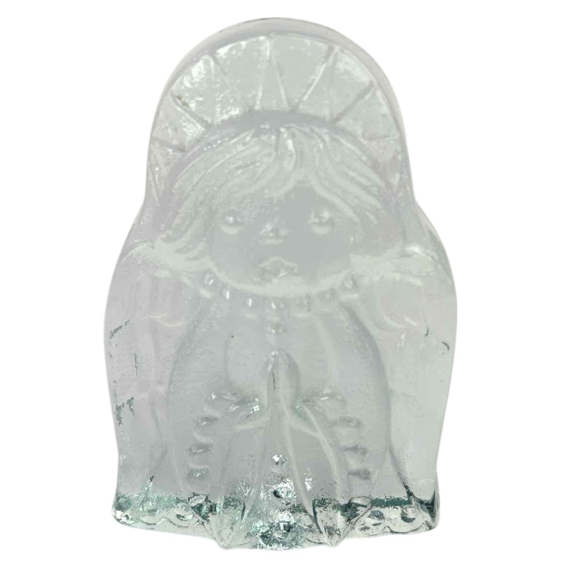 Vintage slab glass praying or singing angel bookend with a mottled texture, in excellent vintage condition with no cracks or chips. Also looks beautiful with a tealight candle burning behind it.