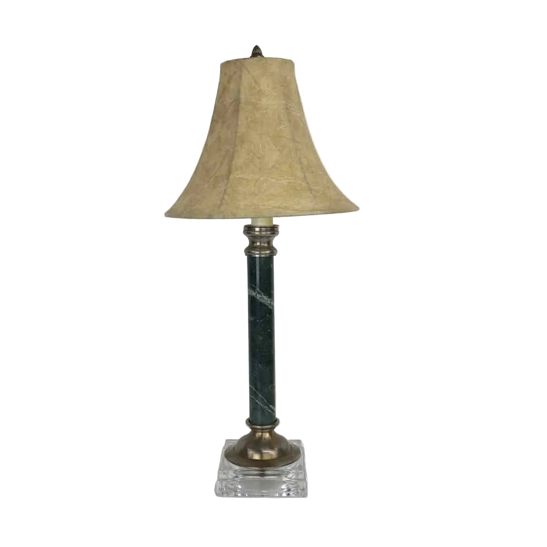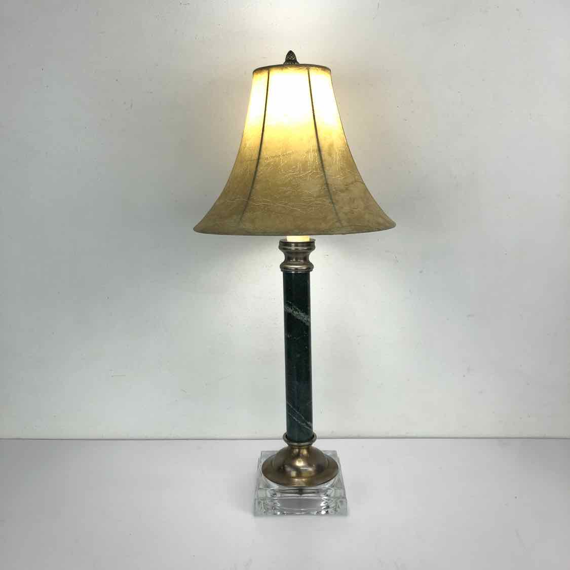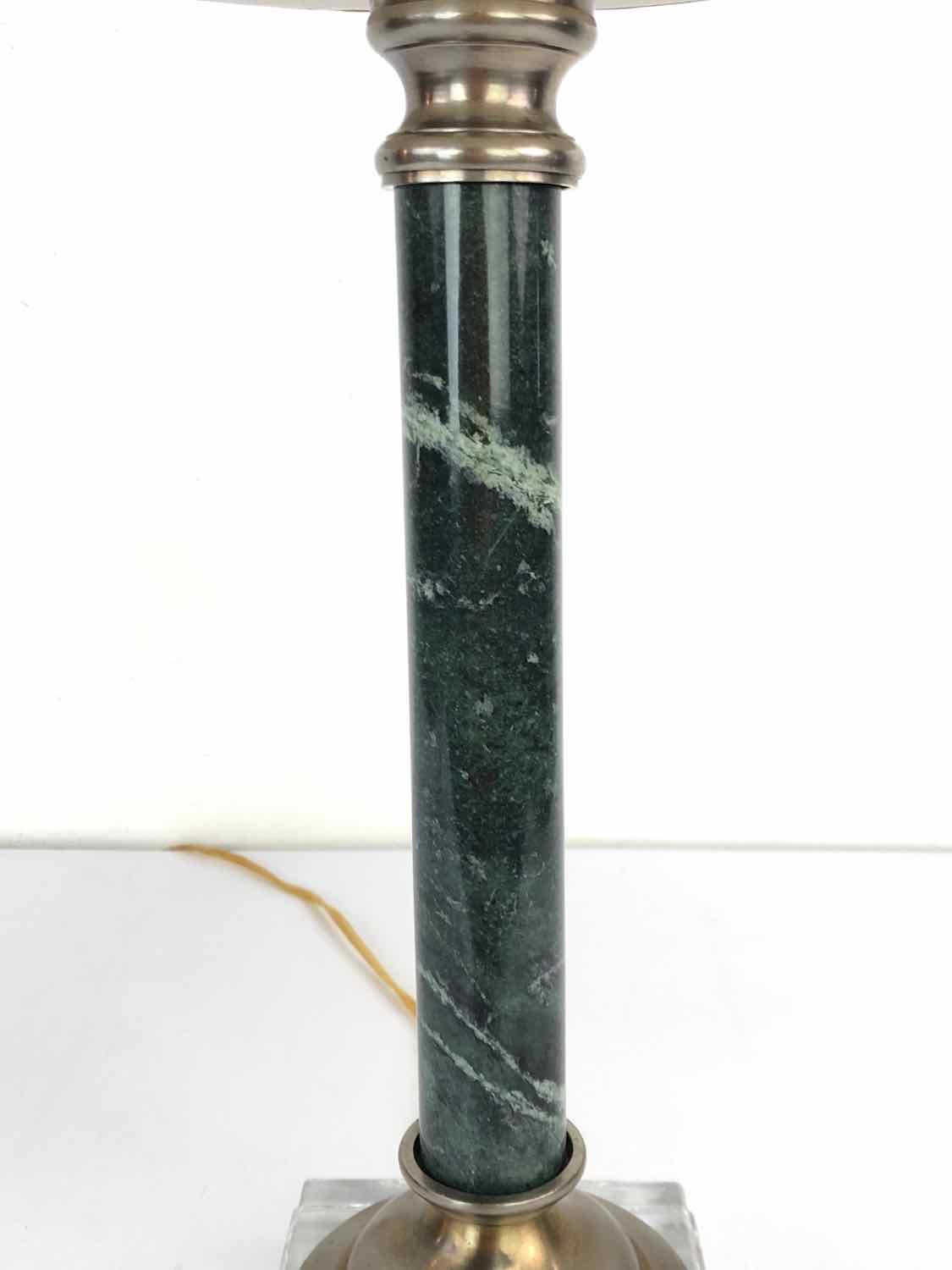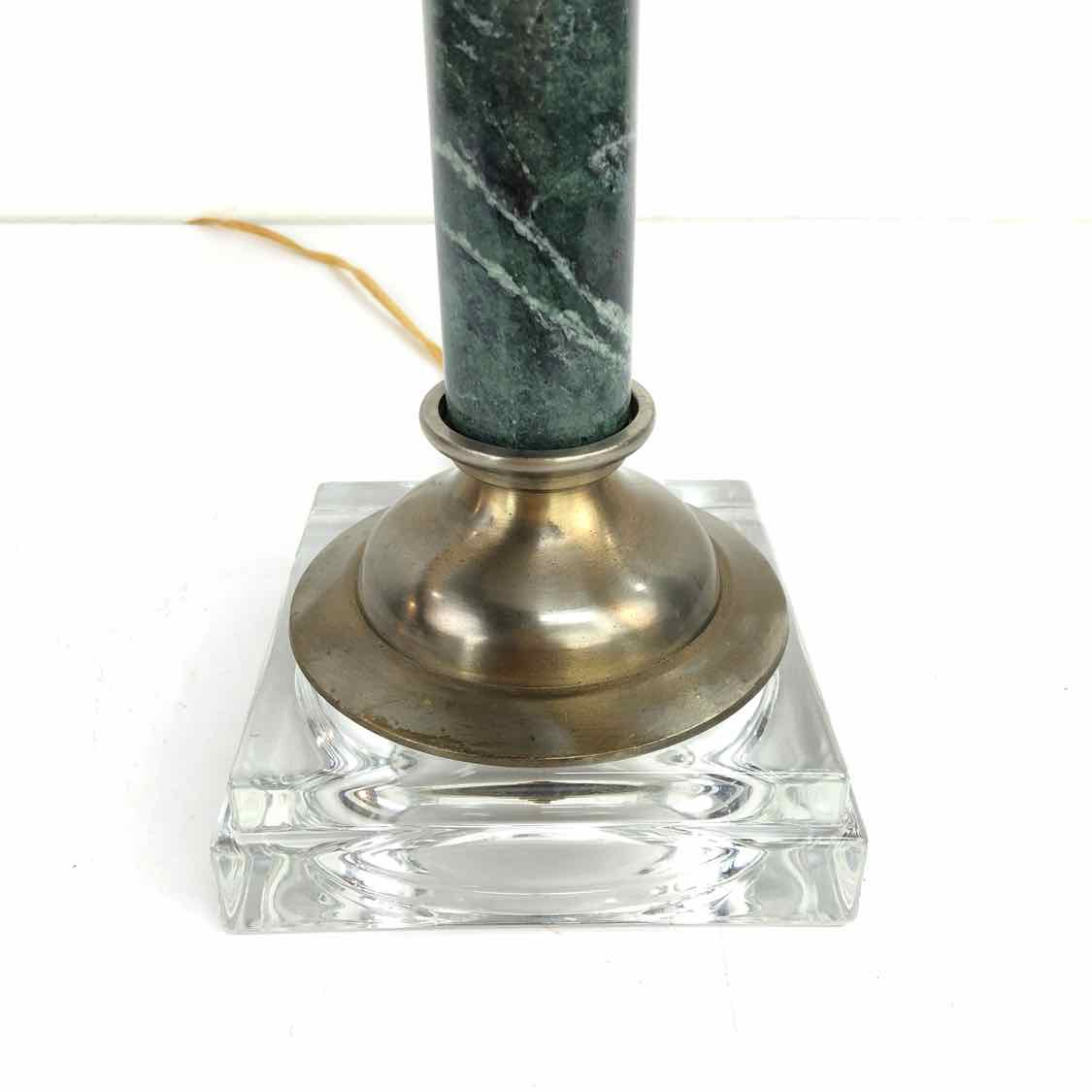 Small bodied green marble column lamp with a lucite base, in excellent vintage condition.