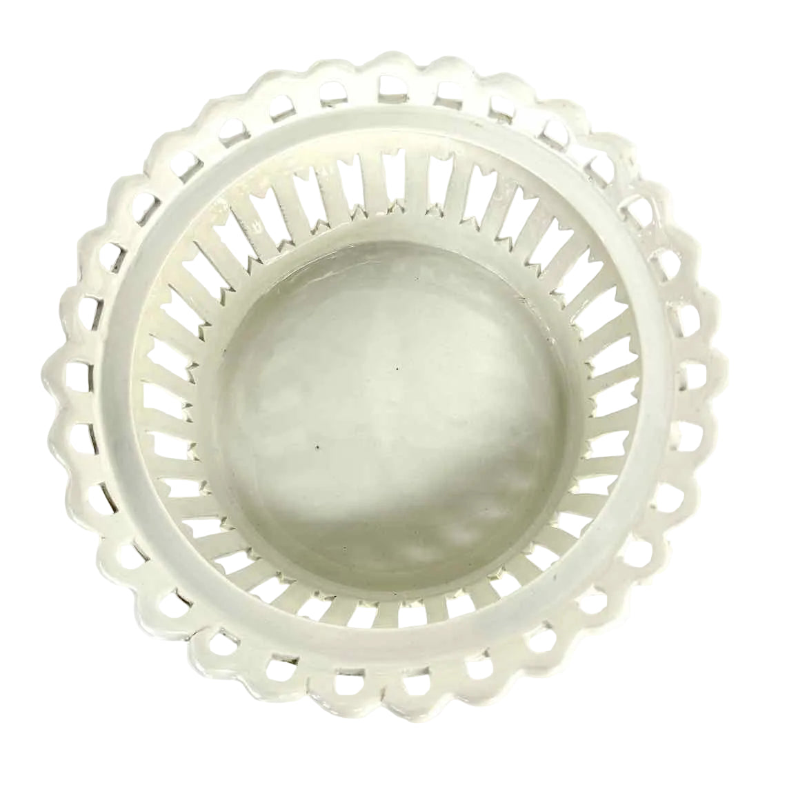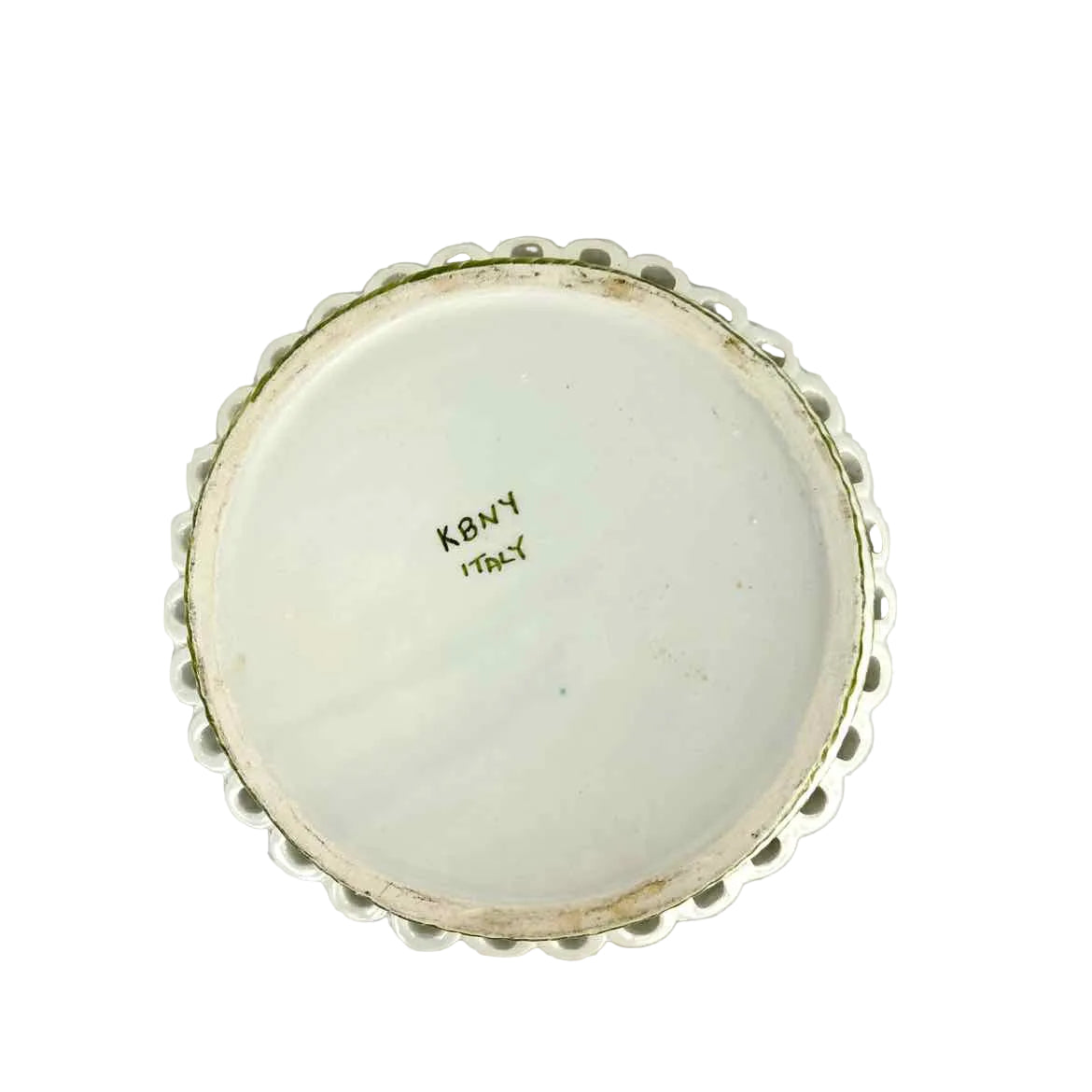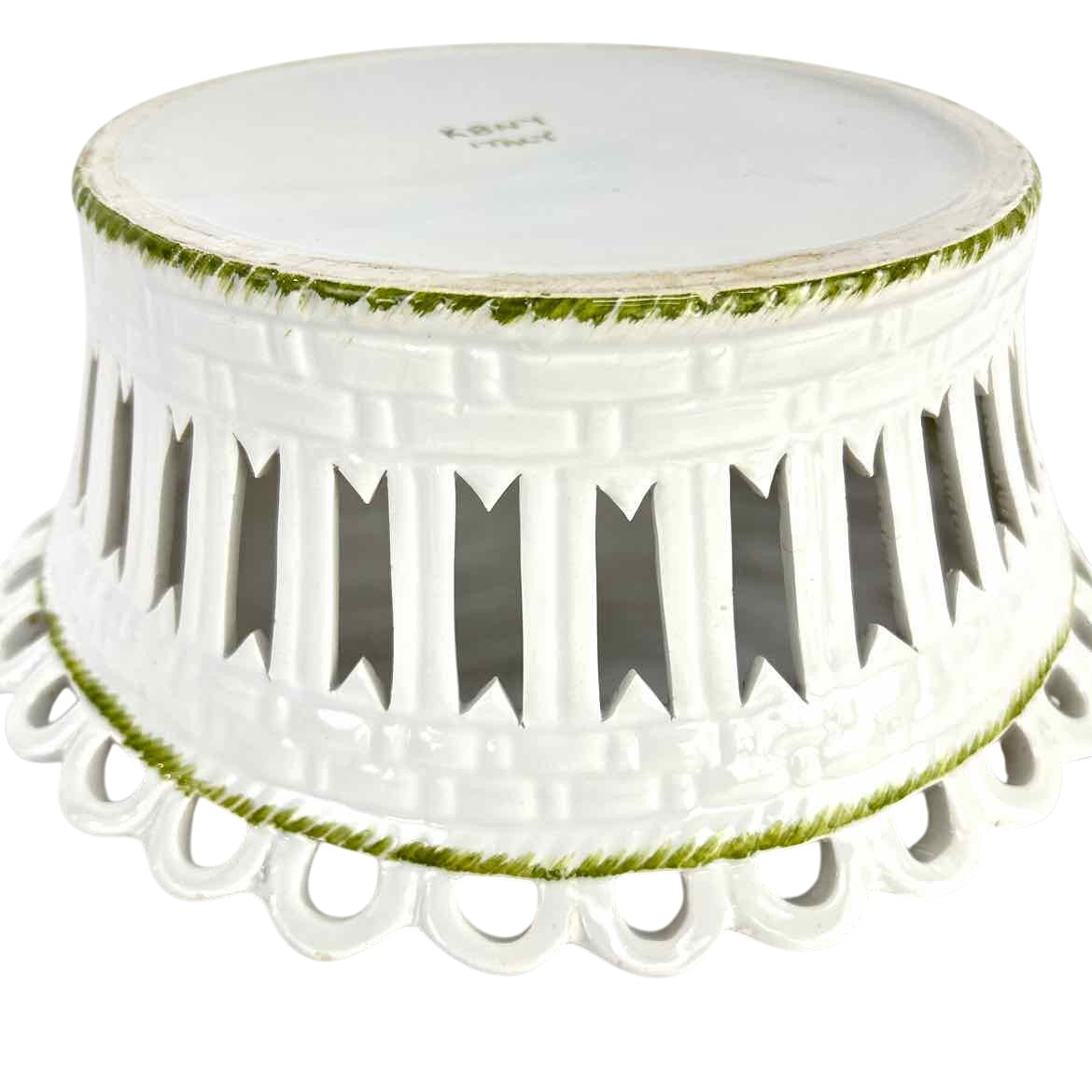 Large Italian pottery fruit bowl or centerpiece bowl with cutout sides and scallop rim, a faux basketweave texture and rope trim in green. In very good vintage condition, gorgeous in a classic home or for a grand millennial.