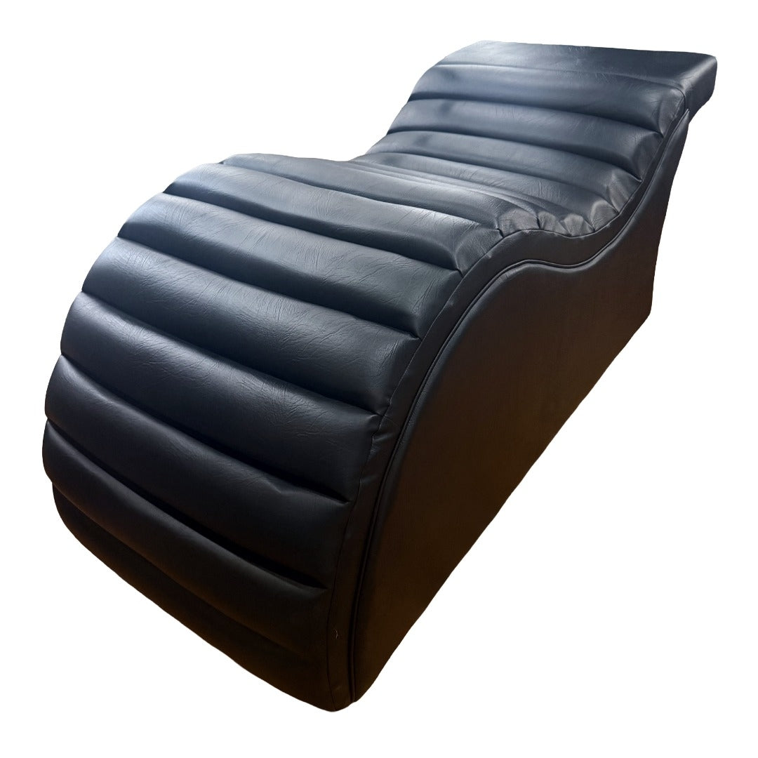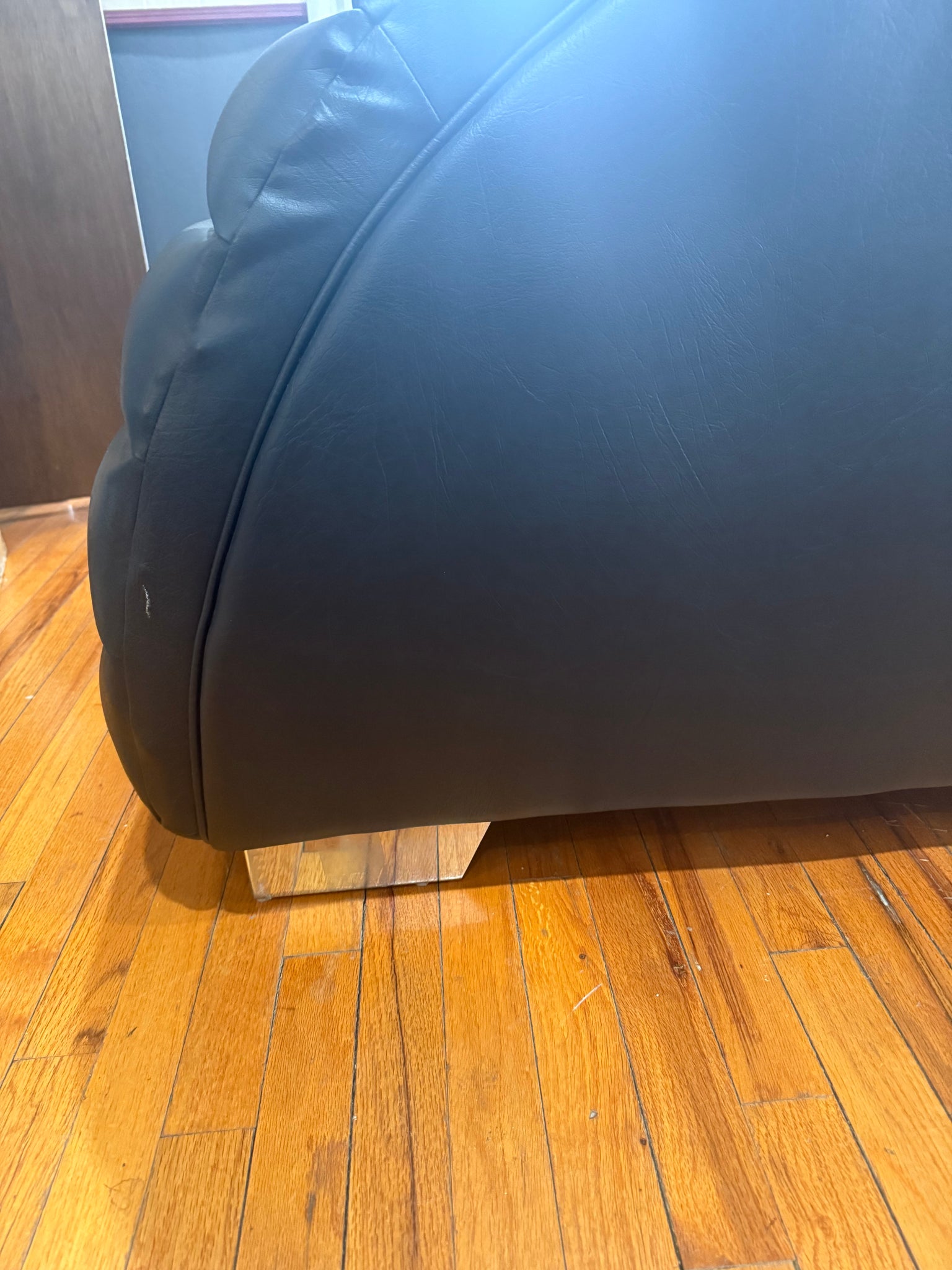 Ergonomic curved beauty bed, perfect for lashes, brows, facials, and medi-spa appointments. Retails: $2587. Black vegan leather & chrome feet, in very good secondhand condition with one small tear near the base as shown.